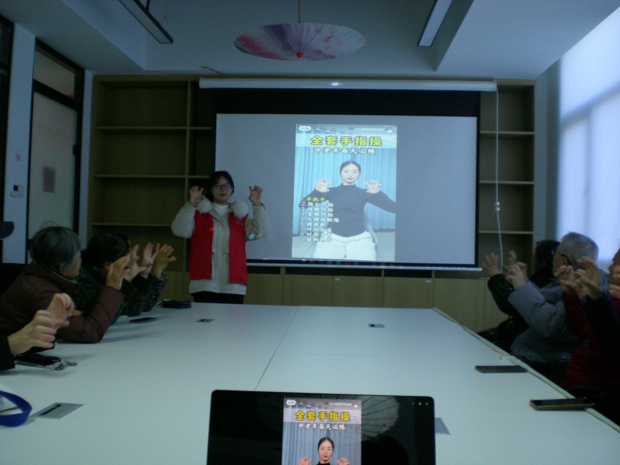 基于问卷分析,志愿者现场反馈,围绕老人关心的情绪问题,示范讲解减压手指操。“按太阳穴、转手腕、捏指尖”,简单易学的动作引来老人们纷纷模仿,活动室内手势整齐、笑声不断。志愿者还介绍了心理求助热线,鼓励老人主动寻求专业支持。在个性化访谈中,他们进一步倾听老人心声,给予针对性情绪建议。