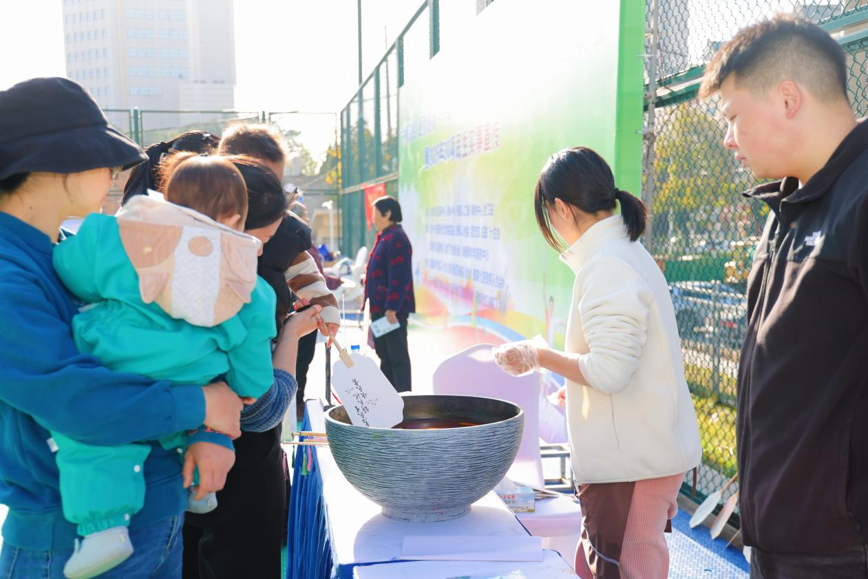 除了精彩的运动项目,活动现场还特别设置了非遗体验区,吸引了不少居民驻足参与。在漆扇制作区,专业老师耐心指导居民们绘制独具特色的民生主题漆扇,一把把精美的漆扇在居民手中诞生,既展现了非遗技艺的魅力,又传递了民生政策的温度。