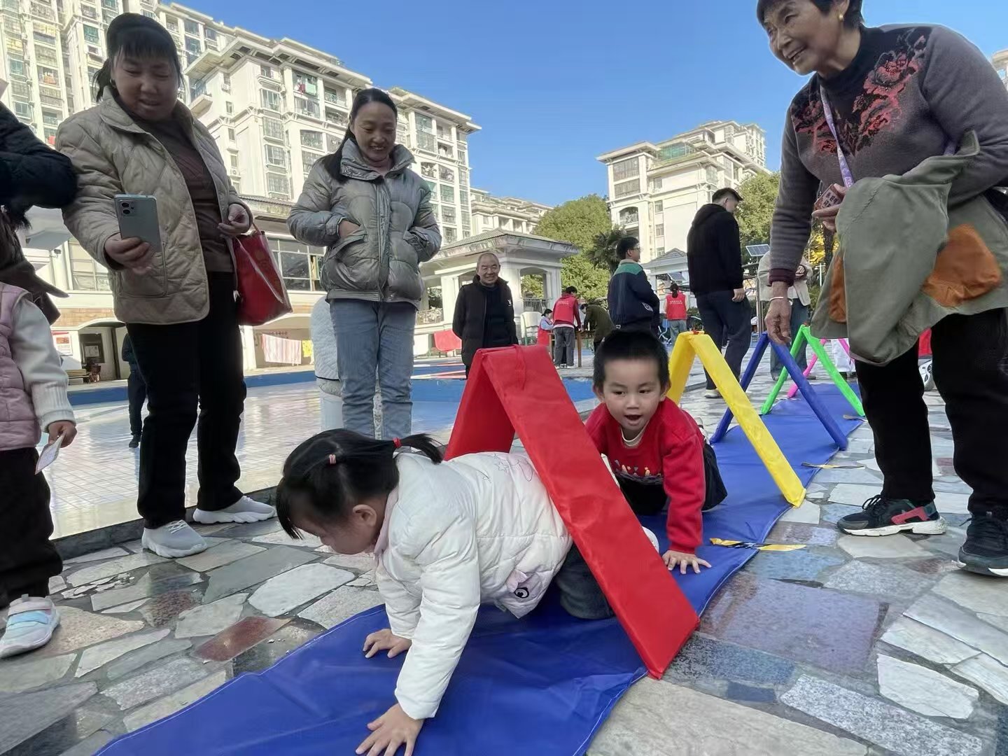 立冬已过,寒意渐浓,但爱与陪伴,能让这个冬天温暖如春。11月29日下午,一场以“冬日暖阳”为主题的亲子趣味嘉年华在南郡明珠下沉广场温情上演,吸引了众多3-12岁儿童家庭的热情参与。本次活动在上海联劝公益基金会的大力支持下,由合肥经开区锦绣社区服务中心、紫云新时代文明实践站、紫云妇联、团支部携手德颐顺老年服务中心、宏博物业、南郡明珠业委会组织开展,以“动静结合、亲子共融”为理念,精心设计了协作挑战、创意艺术、温情互动三大主题关卡,让孩子们在游戏中锻炼能力,在互动中增进亲情,让家长在陪伴中收获感动。