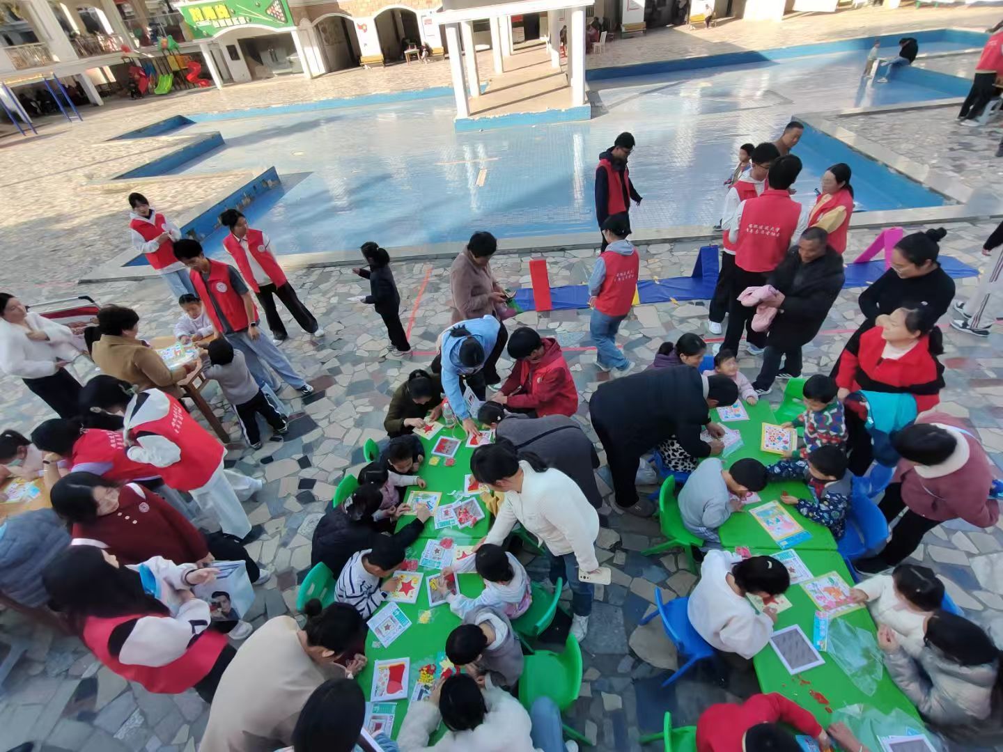 创意艺术区则成为亲子共同创作的温馨天地。毛球粘贴画、纽扣粘贴画等手工活动,让家长和孩子一起动手,制作出独一无二的“温暖纪念品”,不少家庭将作品带回家中,留存这份美好的记忆。