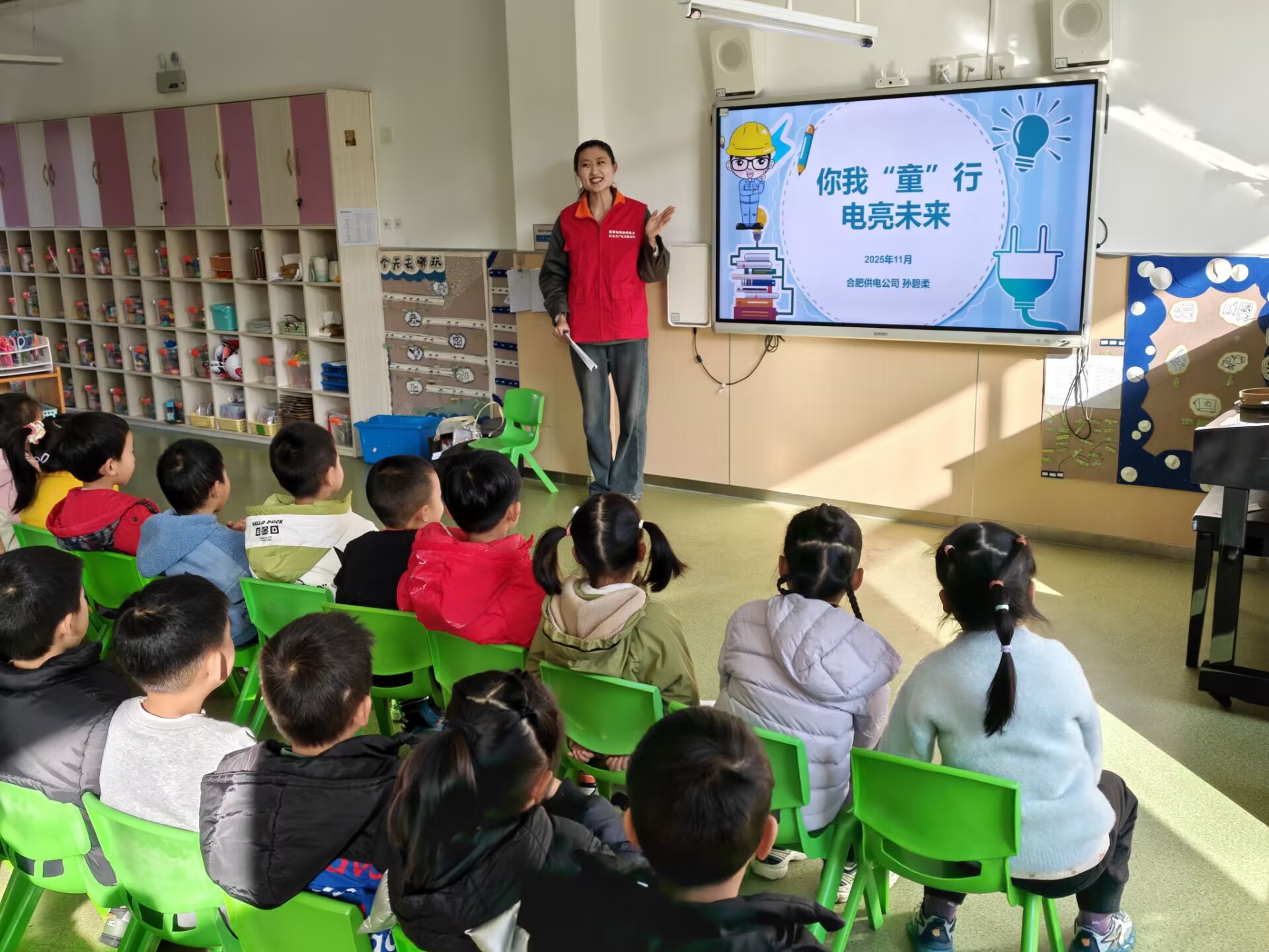 为进一步强化先进典型示范引领作用,让榜样精神在面对面的交流中直抵人心,11月26日下午,合肥经开区莲花中心在合肥海恒教育朝霞幼儿园举办的“我爱我家,我爱合肥,礼让文明”主题活动温情启幕。活动特别邀请合肥市最美志愿者、安徽省优秀共青团干部、合肥供电公司孙碧柔带来“你我‘童’行,电亮未来”专题宣讲,将文明理念与安全知识深度融合,为现场孩子们送上一份满载温暖与守护的“成长礼包”。