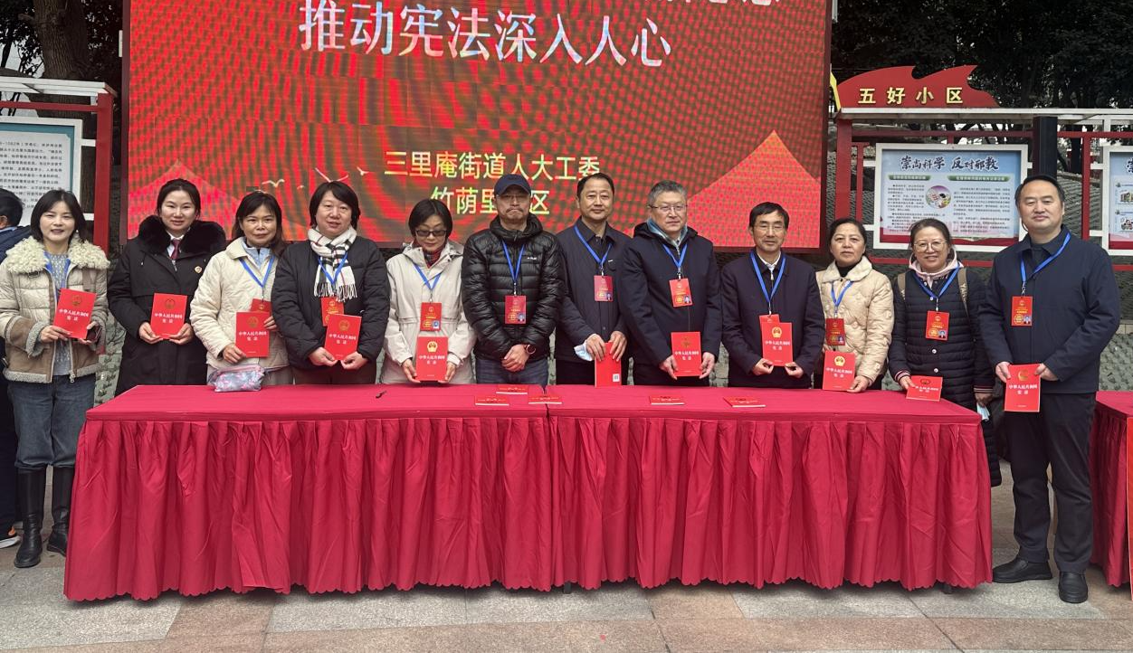 为全面贯彻落实党的二十大和二十届三中、四中全会精神,进一步增强广大居民法治观念和宪法意识,提升基层治理法治化水平,近日,蜀山区三里庵街道龙河路社区人大代表群众联系点组织蜀山区第五届人大代表朱祖翔深入竹荫里社区法治广场,积极参与街道人大工委统一部署的“宪法宣传周”系列活动。