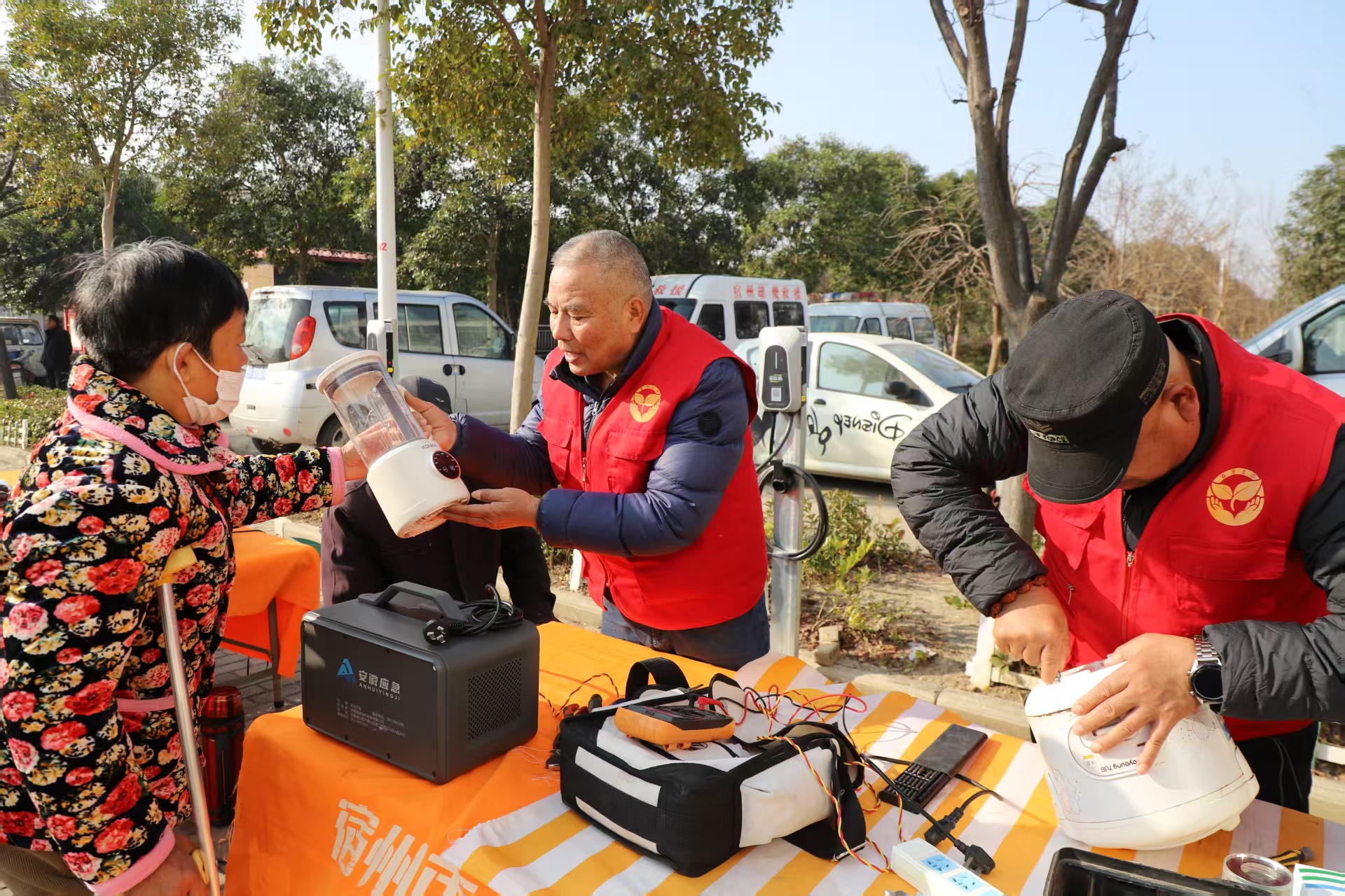 埇桥区文联开展送书画、非遗剪纸等活动,吸引众多男女老少。宿州市书协副主席、中国书协会员秦建拿起笔就放不下,父老乡亲的热情劲让他一连写了20多幅。磨剪子戗菜刀、维家电贴手机膜、补衣服修鞋修理锁,村民们有说有笑。