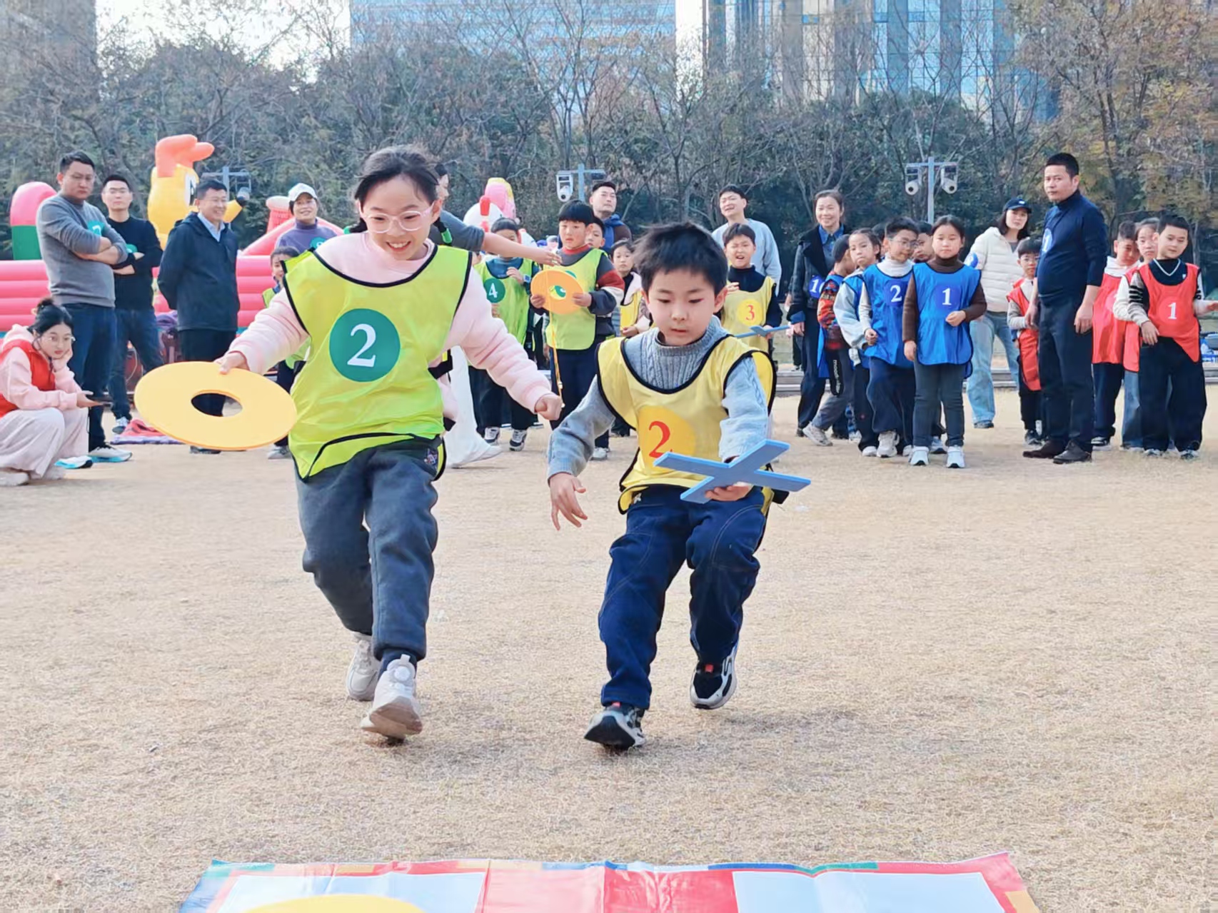 赛场上,小朋友们个个斗志昂扬,跌倒了立刻爬起来继续前进,展现了顽强的拼搏精神;家长们也放下平日的忙碌,全身心投入游戏,与孩子并肩作战,时而鼓励打气,时而默契配合,脸上洋溢着幸福的笑容。
