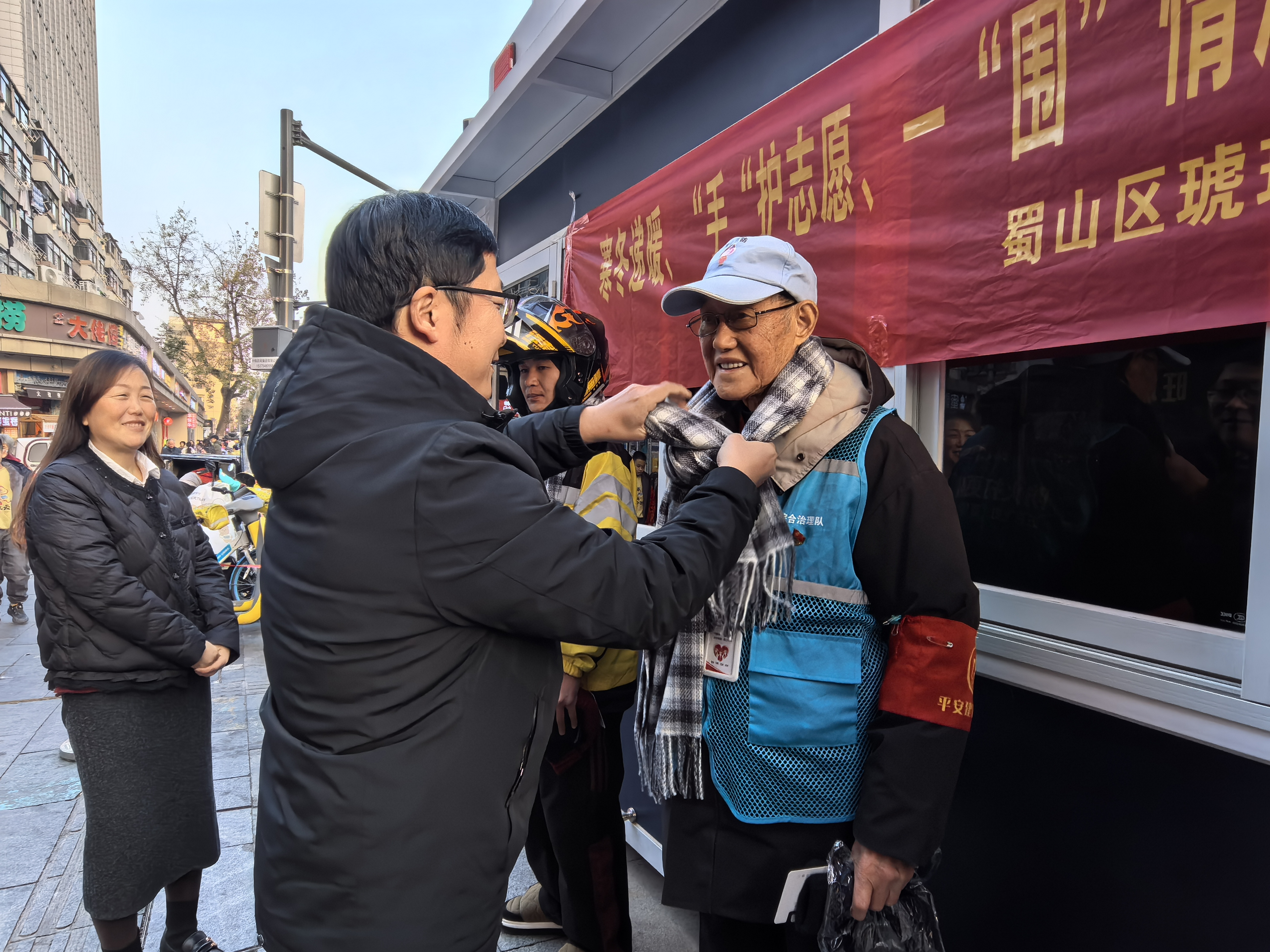 寒风凛冽守初心,“逆行者”绘就城市暖底色。在合肥市蜀山区琥珀街道飞虹社区,有这么一群平凡的志愿者,他们作为街区基层的守护者,无论寒冬或是酷暑,用双手和汗水,默默守护着城市的运转,成为冬日里那一道最动人的风景线。琥珀街道官亭路街区党支部心系这些基层的冬日逆行者,联合商圈商户等多方力量开展“寒冬递暖 ‘手’护志愿 一‘围’情深 致敬冬日逆行者”活动,为这些默默奉献的社区志愿者和户外劳动者送上御寒物资,传递党的关怀与企业担当,从一副副手套到一条条围巾,送出的是感谢,收获的是守护,这每一份物资都是向这些冬日逆行者最崇高的致敬。