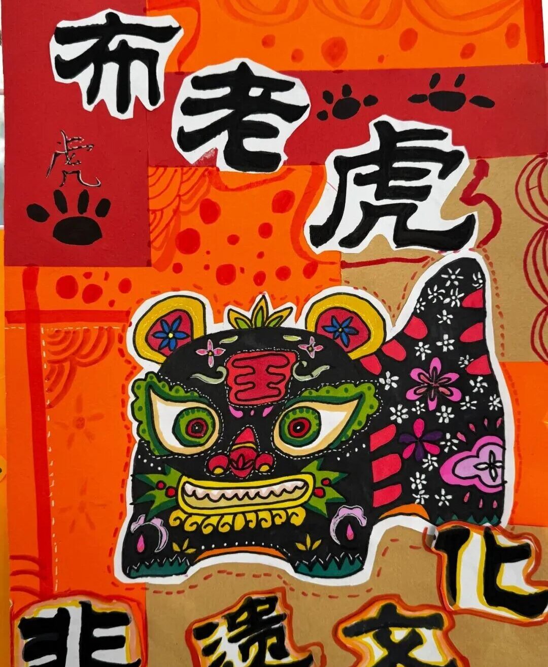 活动现场暖意融融,同学们热情高涨,迅速投入到多样的非遗创作主题中。有同学,手持五彩斑斓的彩纸,认真勾勒、细致剪裁,对称的几何花纹、灵动的花鸟图案在指尖绽放,一幅幅充满童真童趣的剪纸作品新鲜出炉;有同学专注于彩绳的穿梭缠绕,无论是平整精致的平面拼贴,还是错落有致的立体线圈造型,都尽显奇思妙想;有同学更是发挥想象力,通过剪贴、拼画、点缀等手法,将传统布老虎的憨态可掬与现代审美巧妙融合,一个个形态各异、色彩鲜艳的“布老虎”跃然纸上。创作过程中,大家不时交流技巧、分享心得,在欢声笑语中沉浸式感受非遗技艺的独特魅力与传统文化的深厚底蕴。(杨蕾 孙雨静)