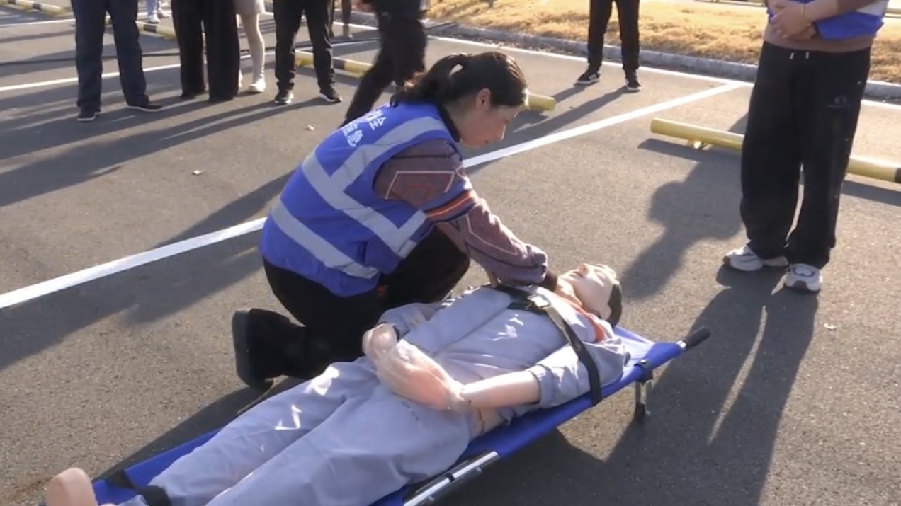 在随后的人员触电急救演练中,模拟作业人员因操作不当突发触电昏厥。现场人员第一时间判断险情,采取切断电源、安全转移伤员等防护措施,避免二次伤害。医疗救护组迅速到位,严格按照急救规范流程,对伤员开展气道开放、胸外按压、人工呼吸等心肺复苏操作,整套动作规范标准、衔接流畅,成功帮助“伤员”恢复生命体征,充分展现了应急救援队伍的专业素养。