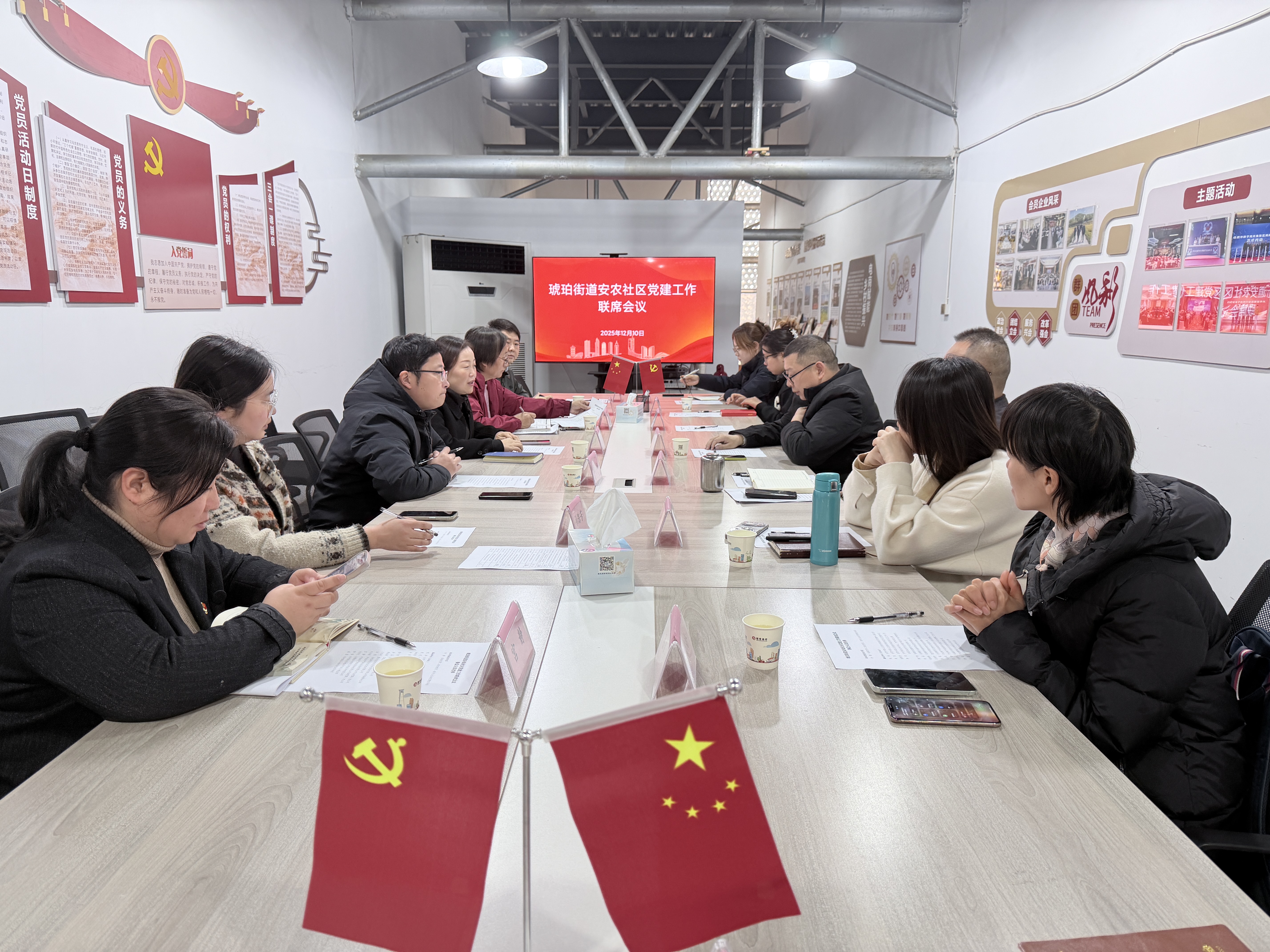 为深入学习党的二十届四中全会精神,全面落实省、市关于党建引领企业高质量发展的工作部署,12月10日上午点,合肥市蜀山区琥珀街道安农社区辖区8家企业法人(负责人)、党建工作(群团)联系人联席会议在合肥市电子商务协会召开。本次会议由省派党建指导员许静牵头组织,旨在搭建政企沟通、企企协作的高效平台,加强党建工作经验交流,凝聚发展合力,推动企业高质量发展。