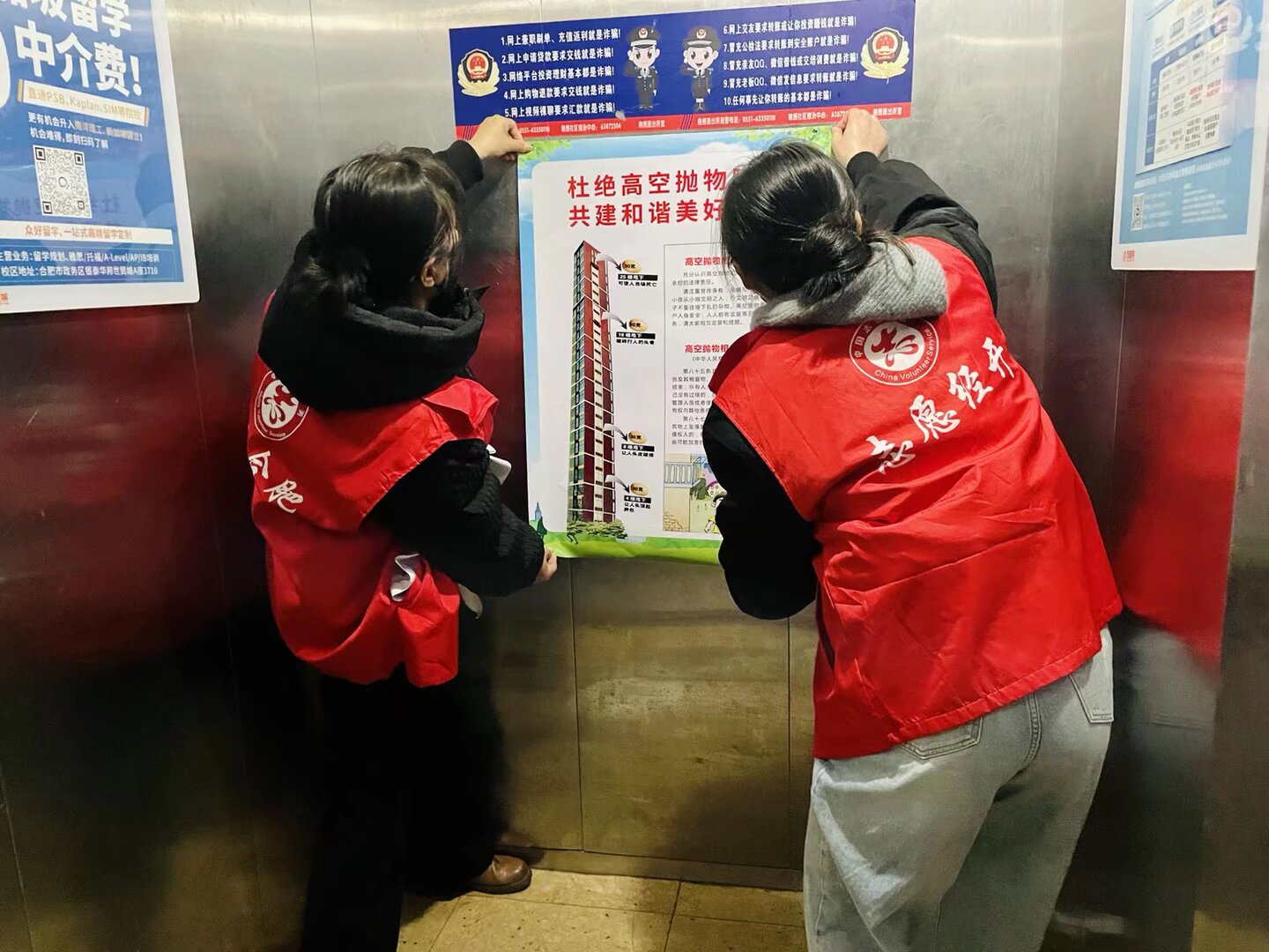 宣讲结束后,志愿者、物业人员与辖区党员分成多个小组,前往小区各楼栋开展海报张贴工作。大家分工协作,在单元门口、公告栏、电梯间等显眼位置,有序张贴“拒绝零抛 守护家园”“高空抛物 害人害己”等主题海报。海报设计图文并茂、警示性强,直观呈现了零抛行为的危害与文明倡议,让居民在进出楼栋时随时能看到提醒,持续强化安全认知。不少居民驻足观看海报,互相交流讨论,纷纷表示会自觉抵制零抛行为,同时提醒家人和邻里注意安全。