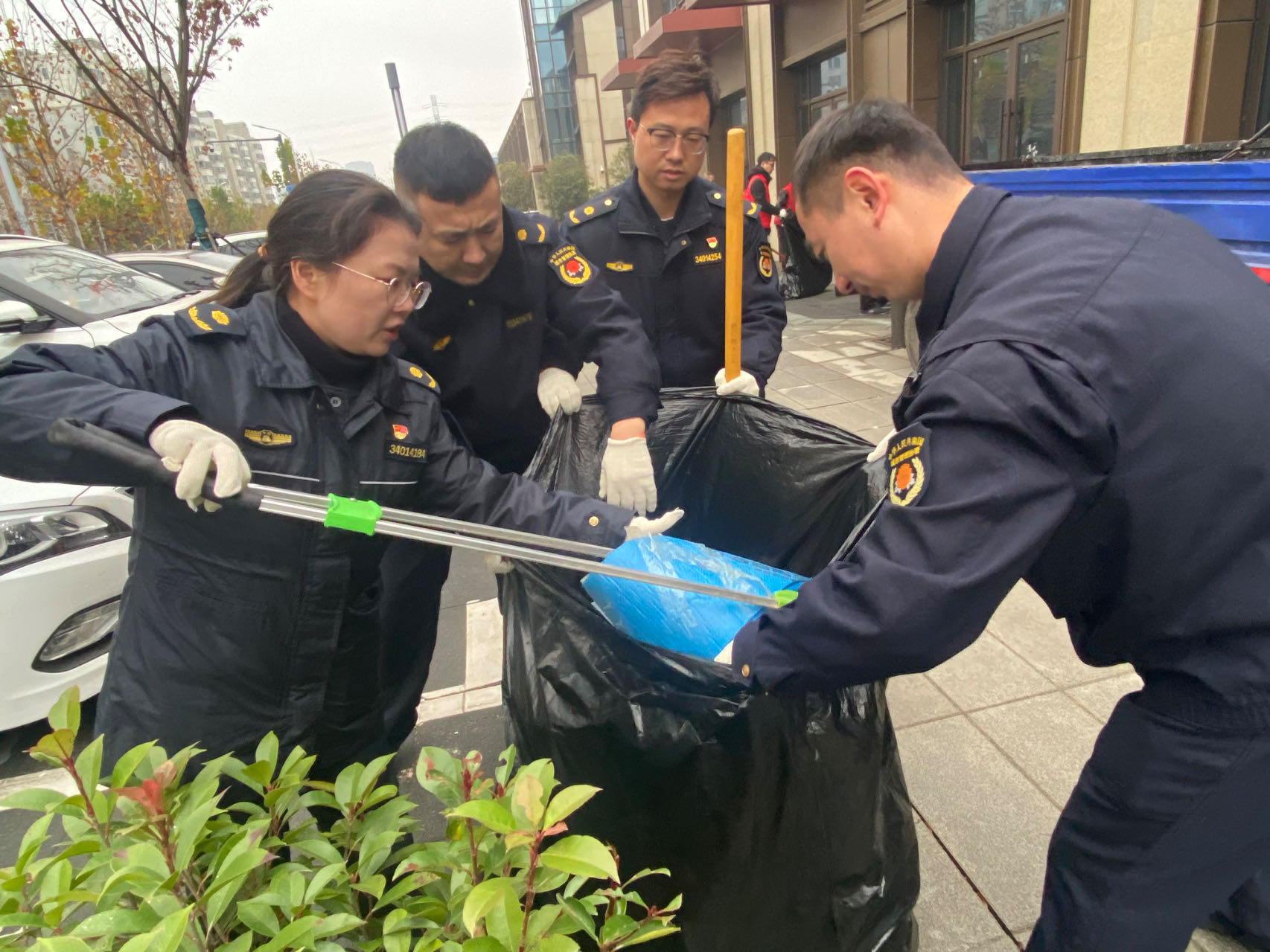 大家分工明确,配合默契,沿着小区外侧、房前屋后及绿化带内的枯枝落叶、塑料包装袋等积存垃圾进行“地毯式”拉网式排查,将隐匿在角落的“顽疾”逐一“揪出”并集中清运。大家分工协作、默契配合,不放过一处卫生死角。经过2个多小时的共同努力,共清运垃圾20余袋,有效改善了小区周边环境卫生面貌。