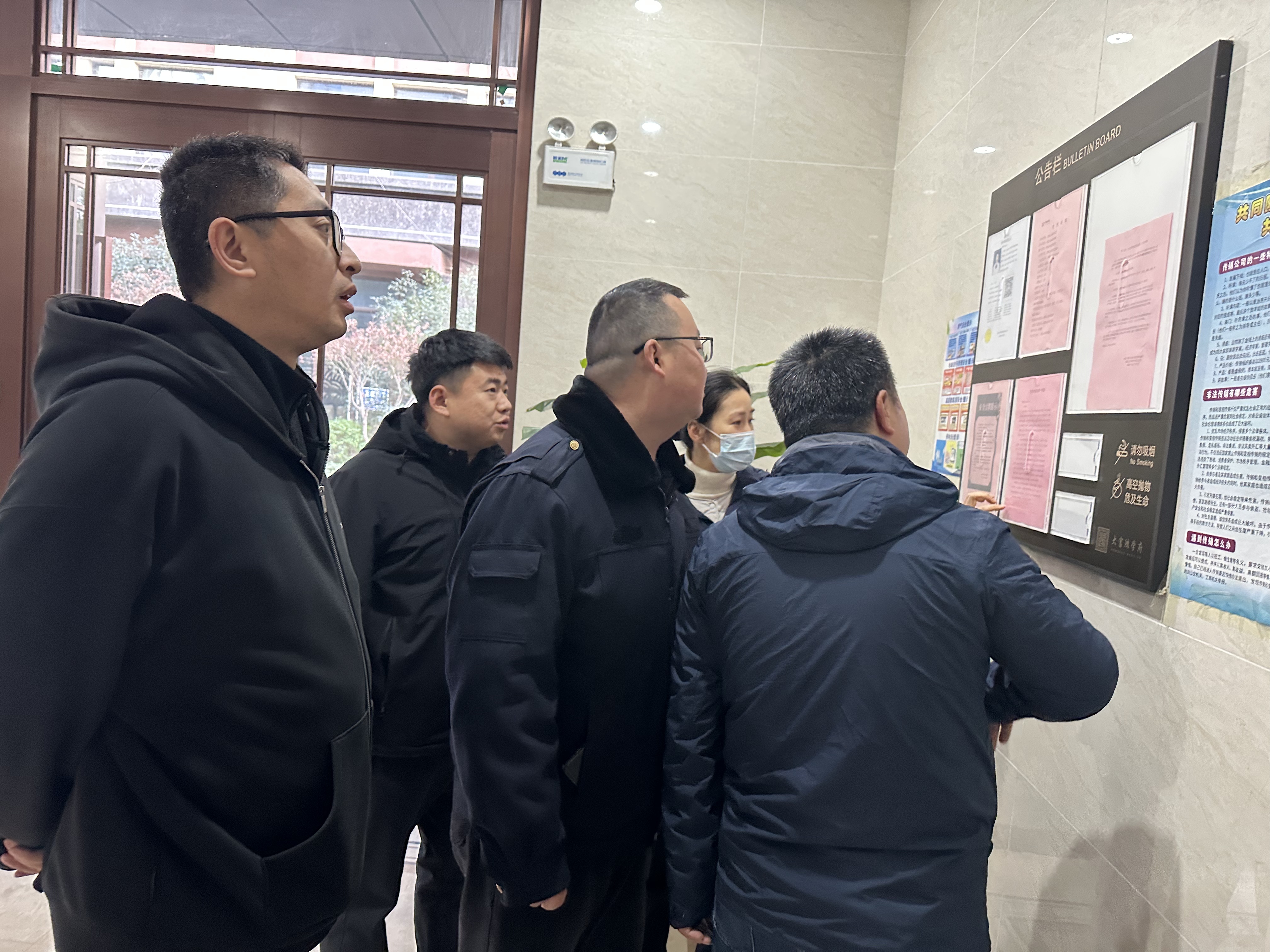 本次督导以大富鸿学府小区为重点。检查人员深入现场,逐项核查了各楼栋是否规范张贴《致全体居民的一封信》、禁燃禁放宣传横幅悬挂是否醒目到位、出入口是否配备循环播放的宣传喇叭,以及是否有佩戴红色宣传袖章的工作人员在岗进行值守提醒。街道应急办对社区前期开展的禁放宣传工作成效给予了肯定,并就检查中发现的部分细节问题,现场提出了明确的整改意见,要求责任单位限期落实到位。