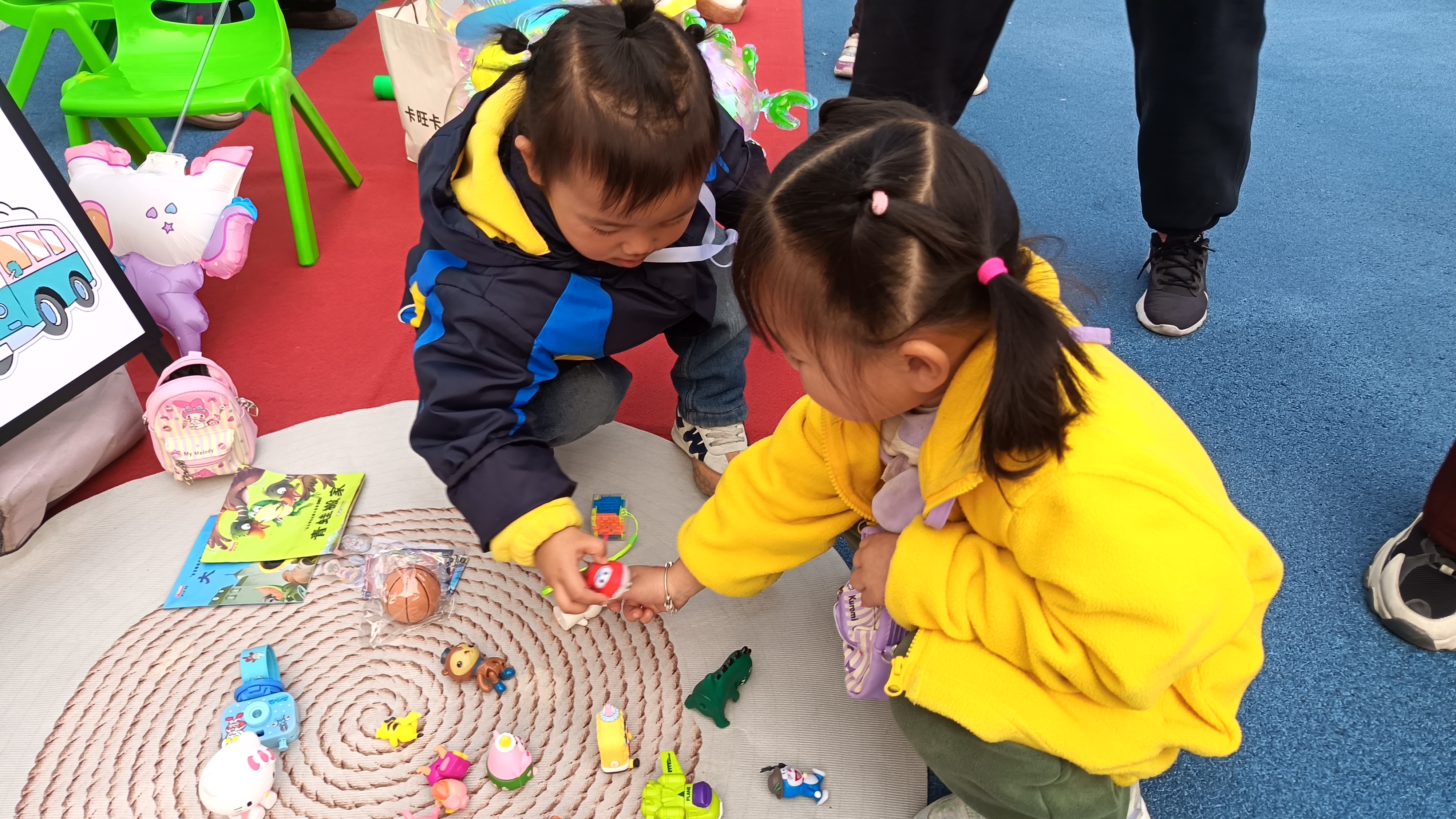 活动当天,幼儿园内化身为一个充满童趣的“迷你集市”。孩子们在家长的陪伴下,化身为一个个有模有样的“小摊主”,纷纷将自己家中闲置的玩具、绘本、手工作品以及精心制作的小工艺品整齐摆出。毛绒玩偶、卡通图书、绘画作品、自制发饰……琳琅满目的“商品”承载着童年的记忆,也等待着在新伙伴手中焕发“第二次生命”。