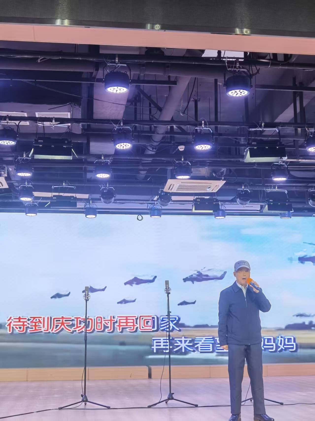 比赛现场,气氛热烈非凡。两名退役军人选手身着整洁服装,精神抖擞、意气风发。曹取民一首铿锵有力的《再见大别山》拉开了他们表演的序幕,歌声嘹亮豪迈,字字句句都饱含着军人的铁血柔情与责任担当,瞬间点燃了全场观众的热情。随后,李杏建又带来了经典军歌《军中绿花》,悠扬深情的旋律搭配饱满真挚的情感,将对部队和战友无限热爱抒发得淋漓尽致,台下掌声与喝彩声此起彼伏。