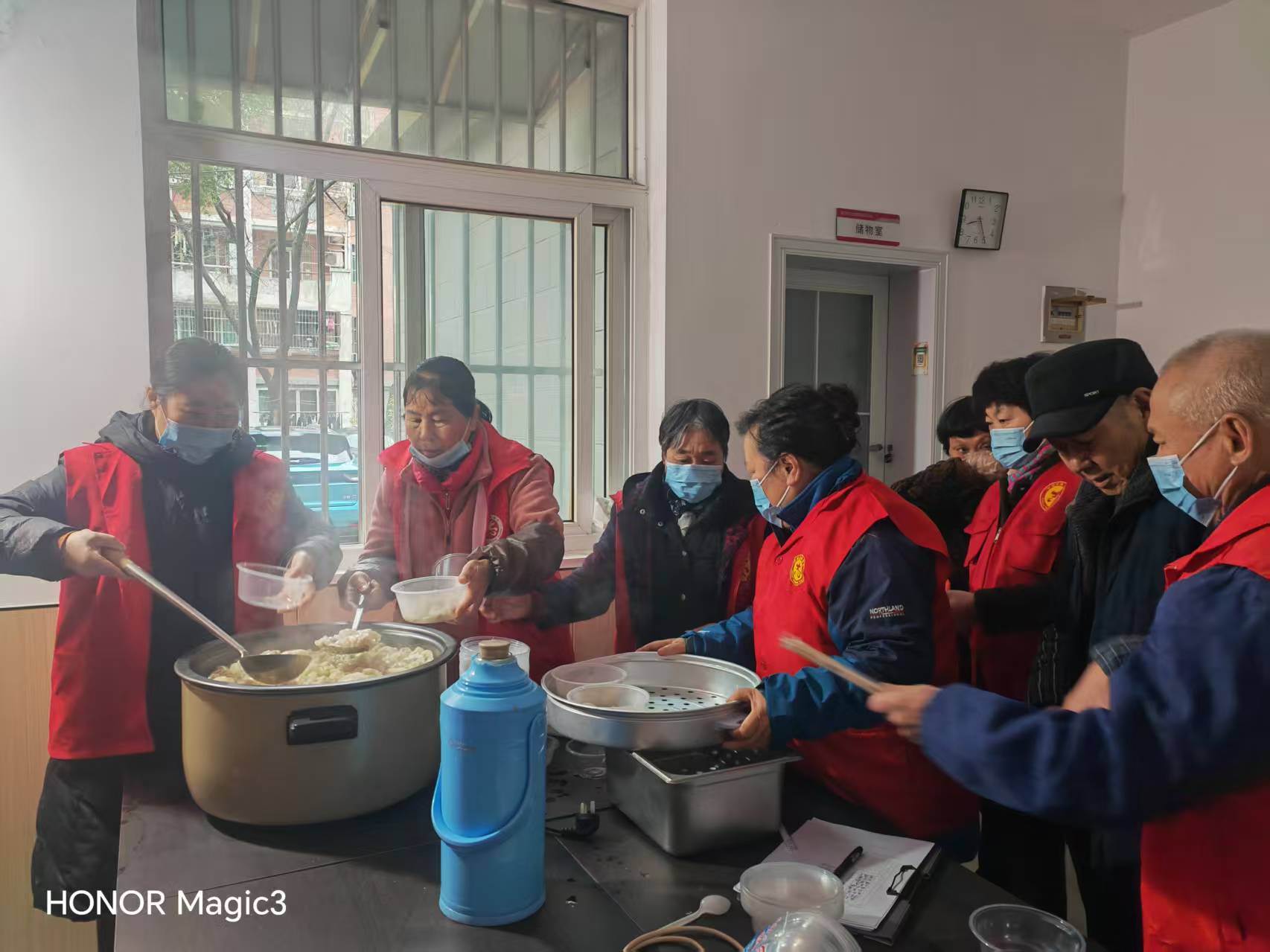 活动当天,志愿者们早早来到社区居民活动中心,将提前准备好的速冻饺子拆封下锅。大家分工协作,烧水、下饺、打捞、分装,忙得不亦乐乎。随着锅里的饺子逐渐浮起、变得饱满,阵阵鲜香扑面而来,一碗碗热气腾腾的饺子被细心地装入餐盒,让这份冬日关怀更添几分温馨。