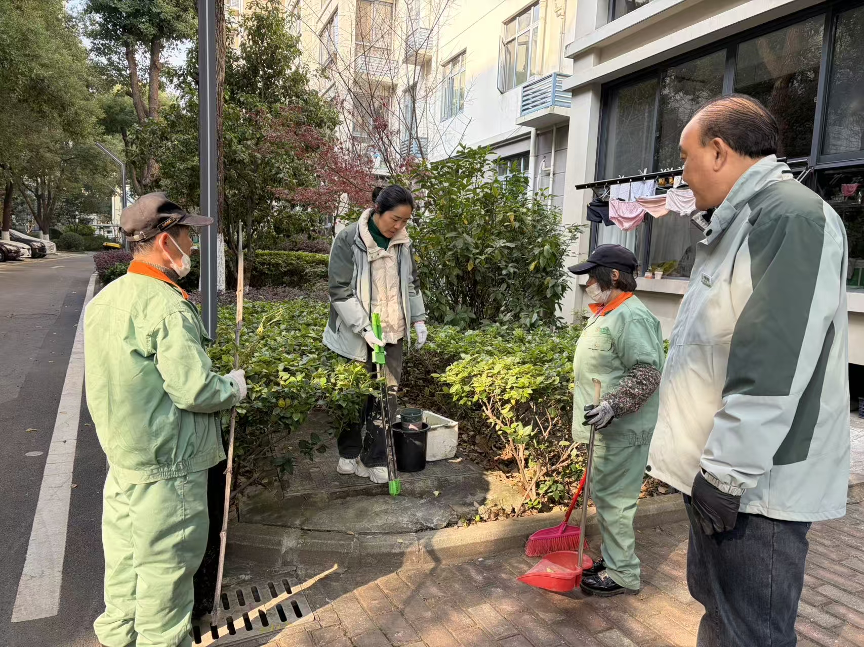 清理行动当日,党支部党员率先垂范、带头攻坚,联合物业保洁人员、业委会成员及志愿者组建多支行动小队,分区域同步推进清理工作。其中,针对两栋高层楼道开展“地毯式”清整,党员搬运重物,物业负责清扫消毒,业委会协调沟通,志愿者分类整理可回收物并登记无主物品。同时,另一支小队同步开展小区环境清扫,重点清理小区内道路、绿化带内的生活垃圾、枯枝落叶及废弃杂物,规范整理乱堆乱放物品。各小队分工明确、协作高效,有条不紊推进清理工作,以实干诠释责任担当。