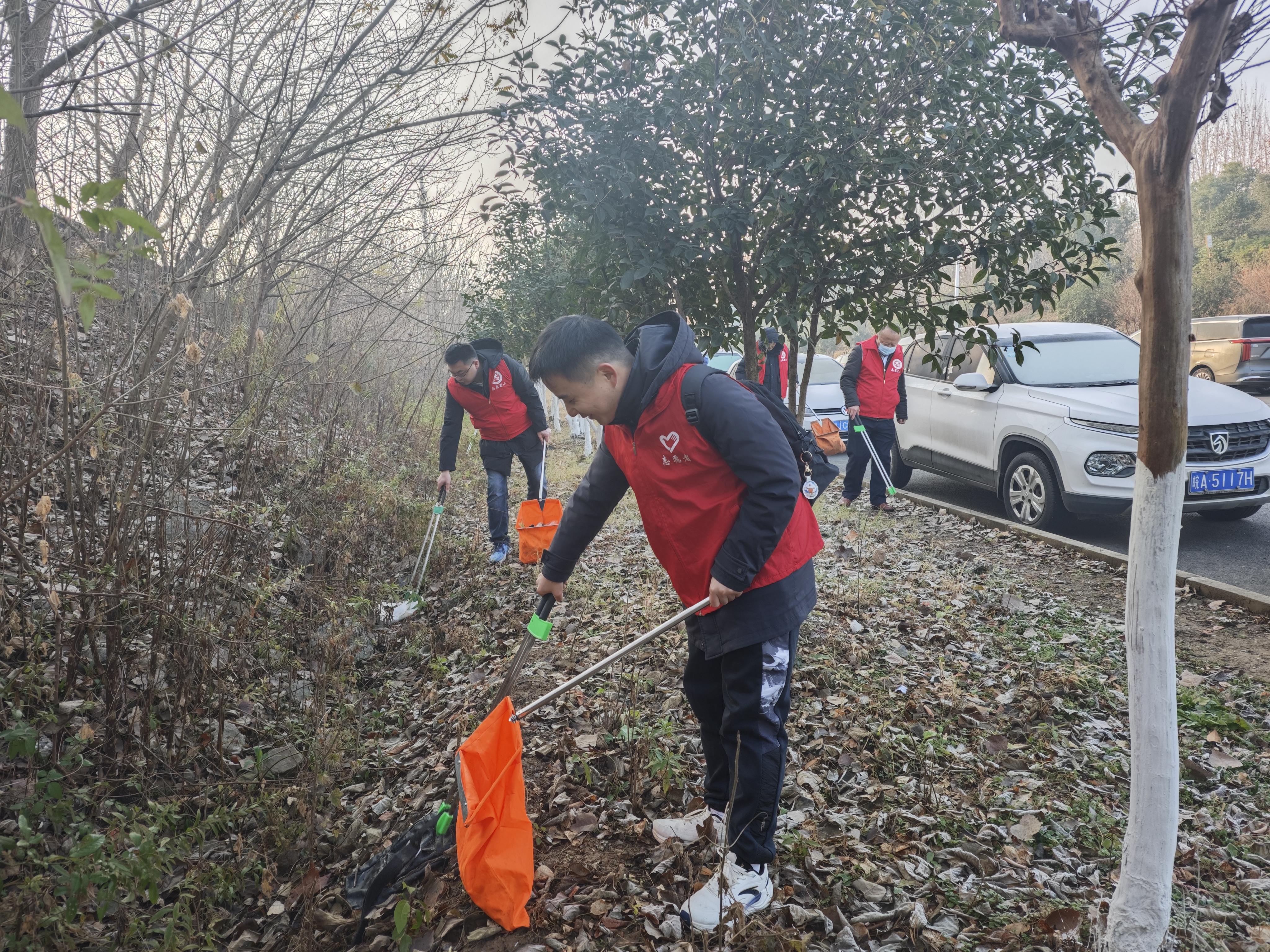 活动现场,志愿者们身着统一马甲,手持清洁工具,兵分两路开展环境清理行动。一组沿长江西路辅路至高速蜀山入口周边,重点对沿线绿化带进行细致排查,清理隐匿的零星垃圾与卫生死角,着力提升主干道及高速入口沿线的环境面貌。另一组沿玉蕾路对两侧河道环境开展专项整治,志愿者们仔细清理沿岸绿化带与堤坡,对积存的垃圾杂物进行彻底清除,以实际行动维护水清岸绿的河道生态环境。