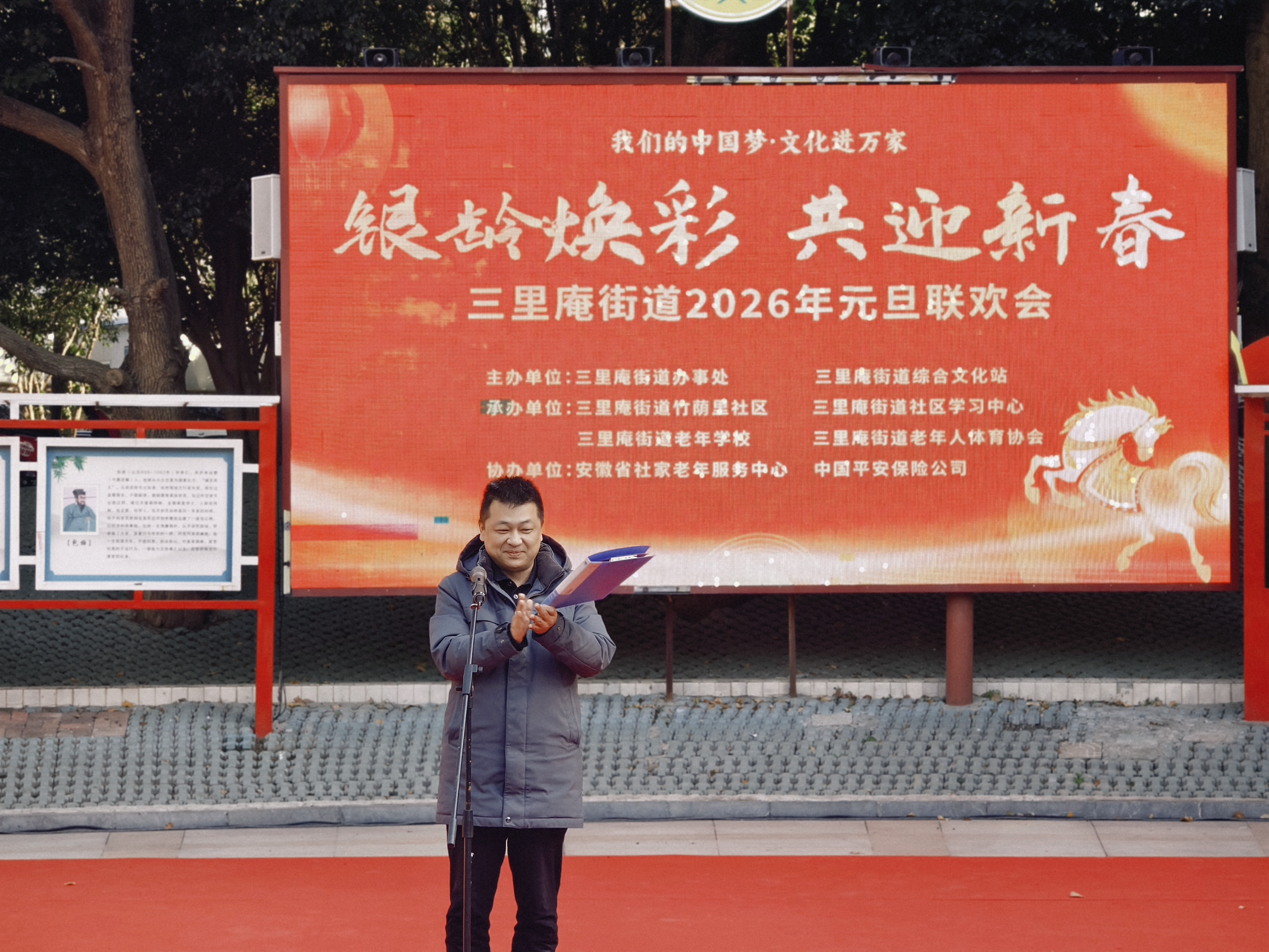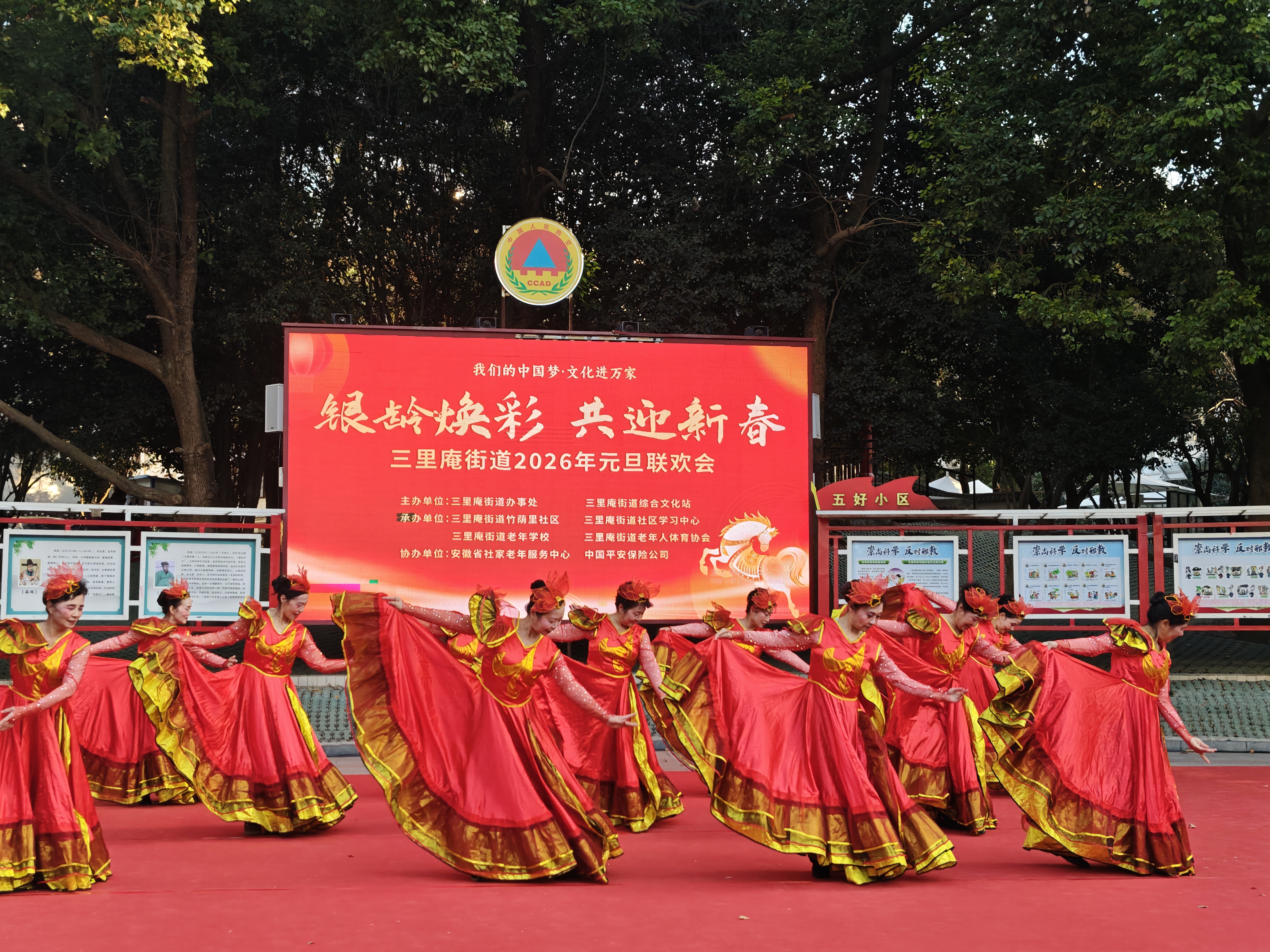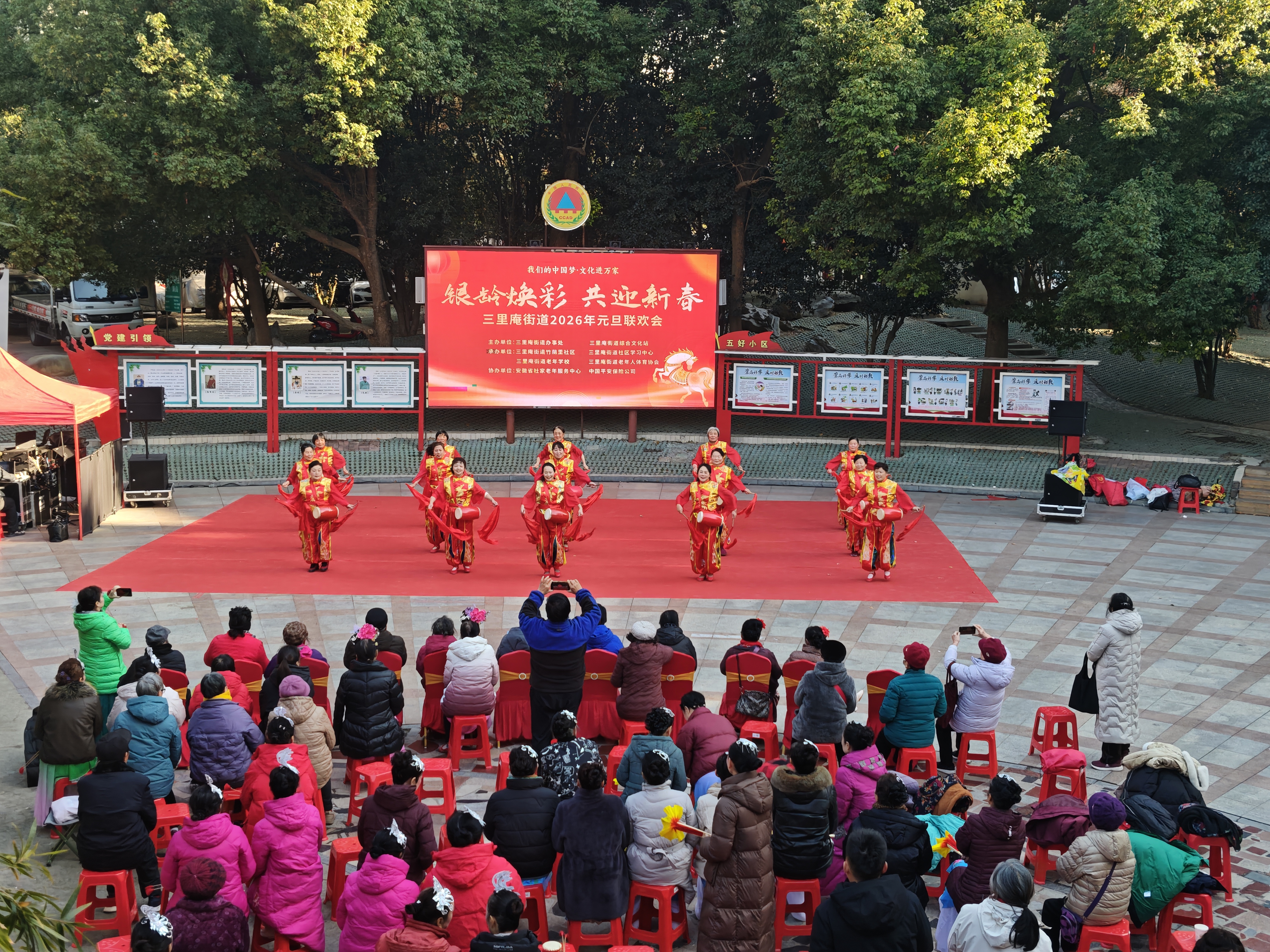 12月26日,由合肥市蜀山区三里庵街道办事处、三里庵街道综合文化站主办,三里庵街道竹荫里社区、三里庵街道社区学习中心等承办,安徽省社家老年服务中心、中国平安保险公司协办的“我们的中国梦・文化进万家——银龄焕彩 共迎新春”三里庵街道2026年元旦联欢会圆满落幕。