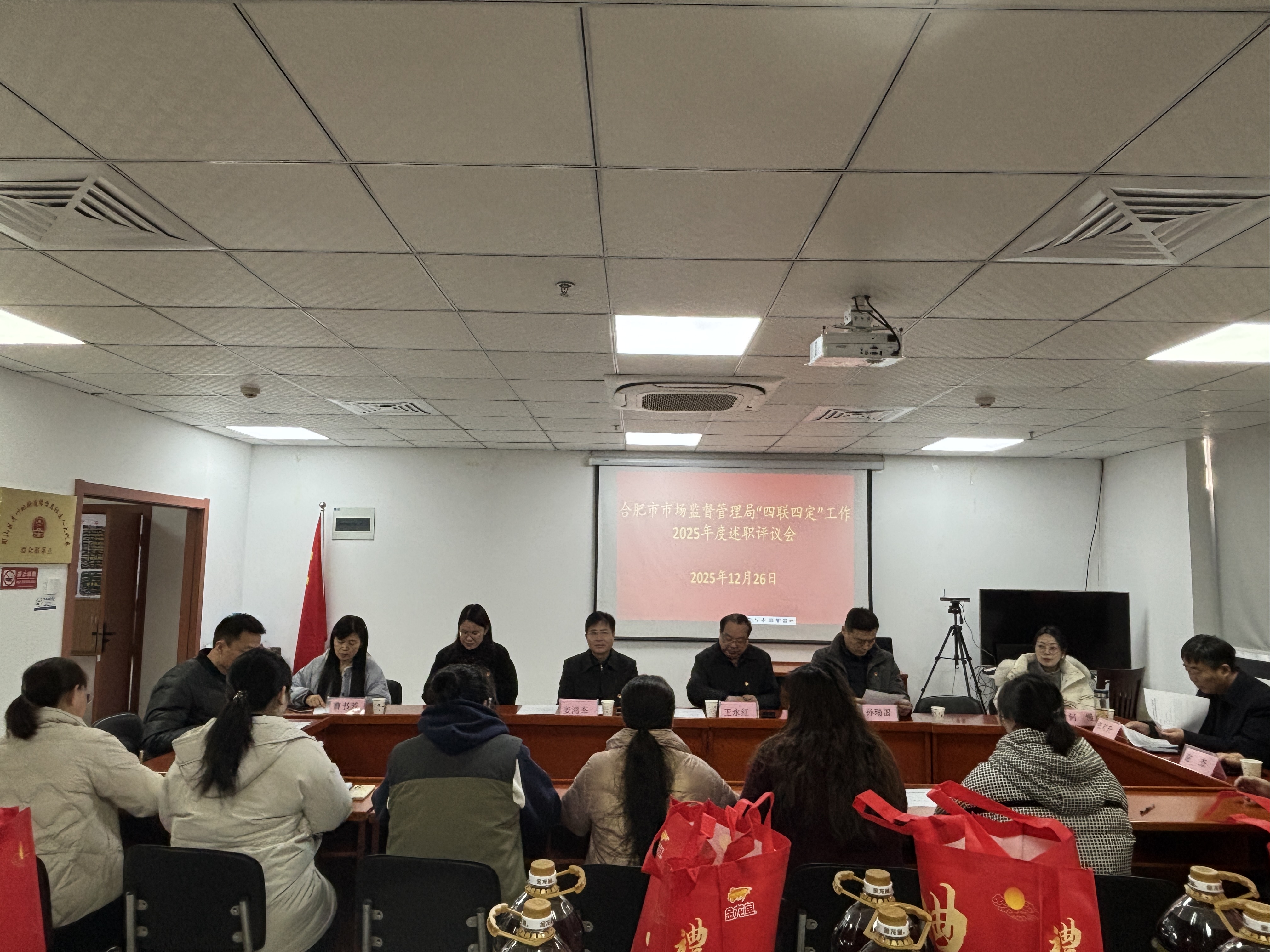 12月26日上午,合肥市市场监督管理局党组成员、副局长、机关党委书记姜鸿杰一行来到蜀山区荷叶地街道绿怡居社区开展2025年度“四联四定”工作述职评议会,会议由绿怡居社区党委书记宋俊主持,社区两委班子成员以及社区党员群众代表参加会议。会上,姜鸿杰就2025年度“四联四定”工作开展情况进行了述职,随后与会党员、群众代表对合肥市市场监督管理局“四联四定”工作进行了评议,并结合实际情况认真填写了评议表。会后,姜书记一行对社区困难群众展开慰问,为他们提前送上节日祝福与温暖。(王锐 陈莹莹)