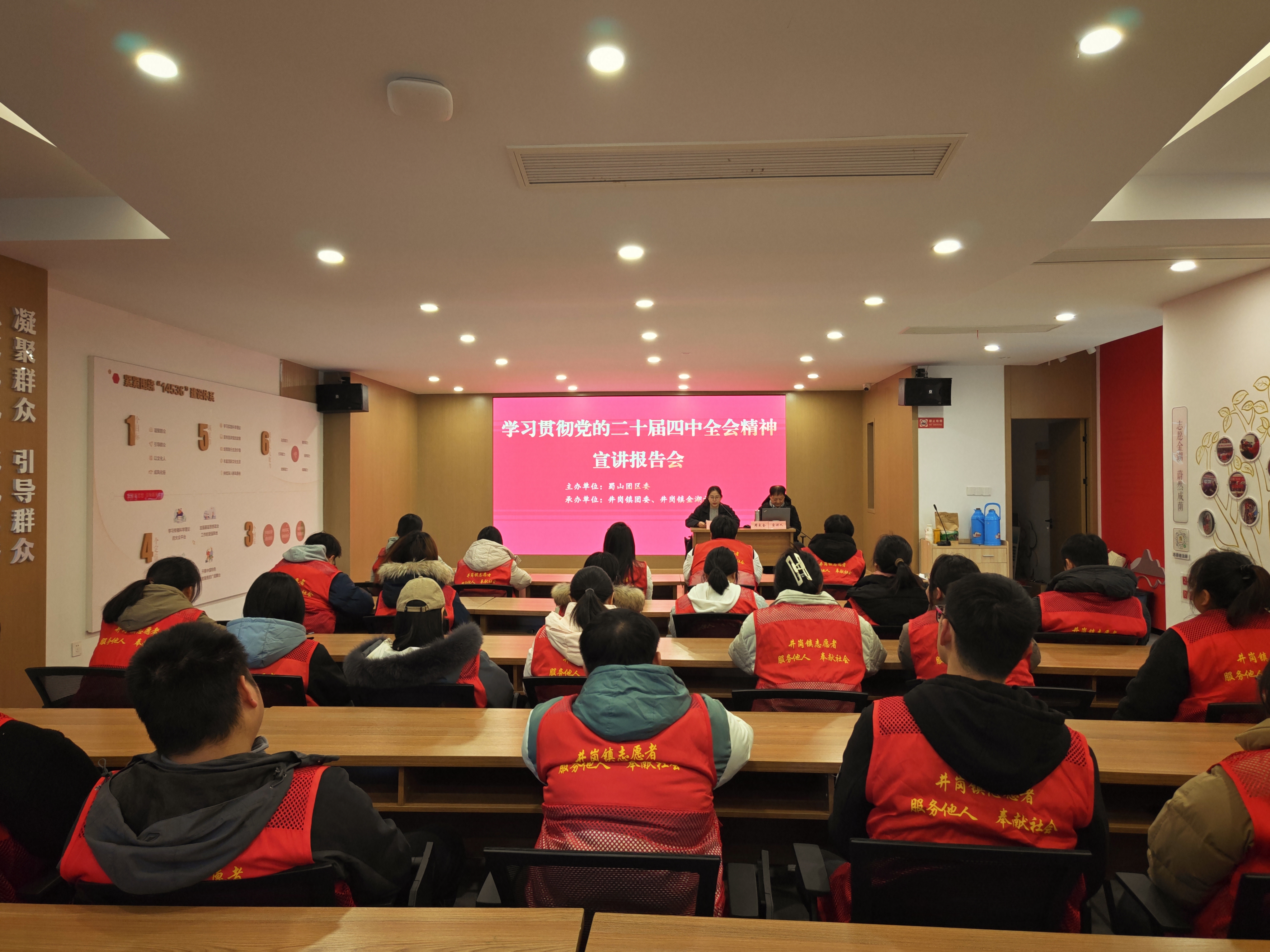 为深入学习贯彻党的二十届四中全会精神,引导青年志愿者坚定理想信念、勇担时代使命,12月26日下午,合肥市蜀山区井岗镇团委联合金湖社区在金湖社区好人馆举办党的二十届四中全会精神宣讲报告会,全镇30余名青年志愿者参加活动。