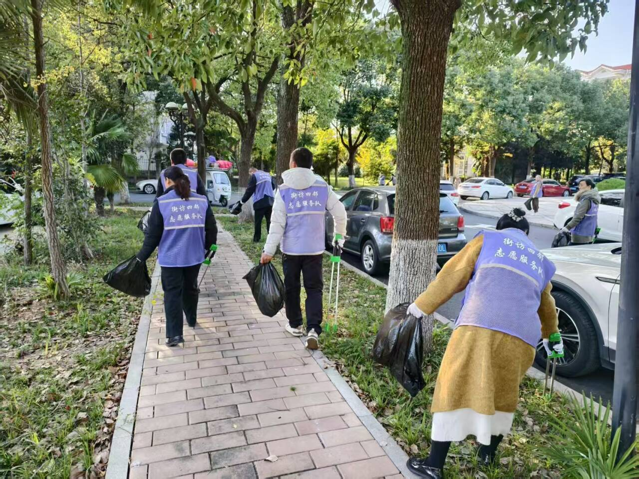 在网格员的统筹协调下,联合辖区单位市监所,党员骨干充分发挥先锋模范作用,带头扛起整治责任,以实干为小区环境“焕新”赋能,引领带动治理热潮。12月底,乡村花园小区志愿服务者身着紫马甲的身影活跃起来:有的手持扫帚、夹子、垃圾袋等工具,分工协作清扫落叶,有的用夹子清捡绿化带里的漂浮物、果皮纸屑等,有的向居民宣传垃圾分类知识……这是网格员牵头的小区治理志愿服务活动现场,一场以“网格一家亲,共治暖人心”为主题的爱心行动,正让邻里温情在志愿服务中传递,让家园治理在全民参与中焕新。