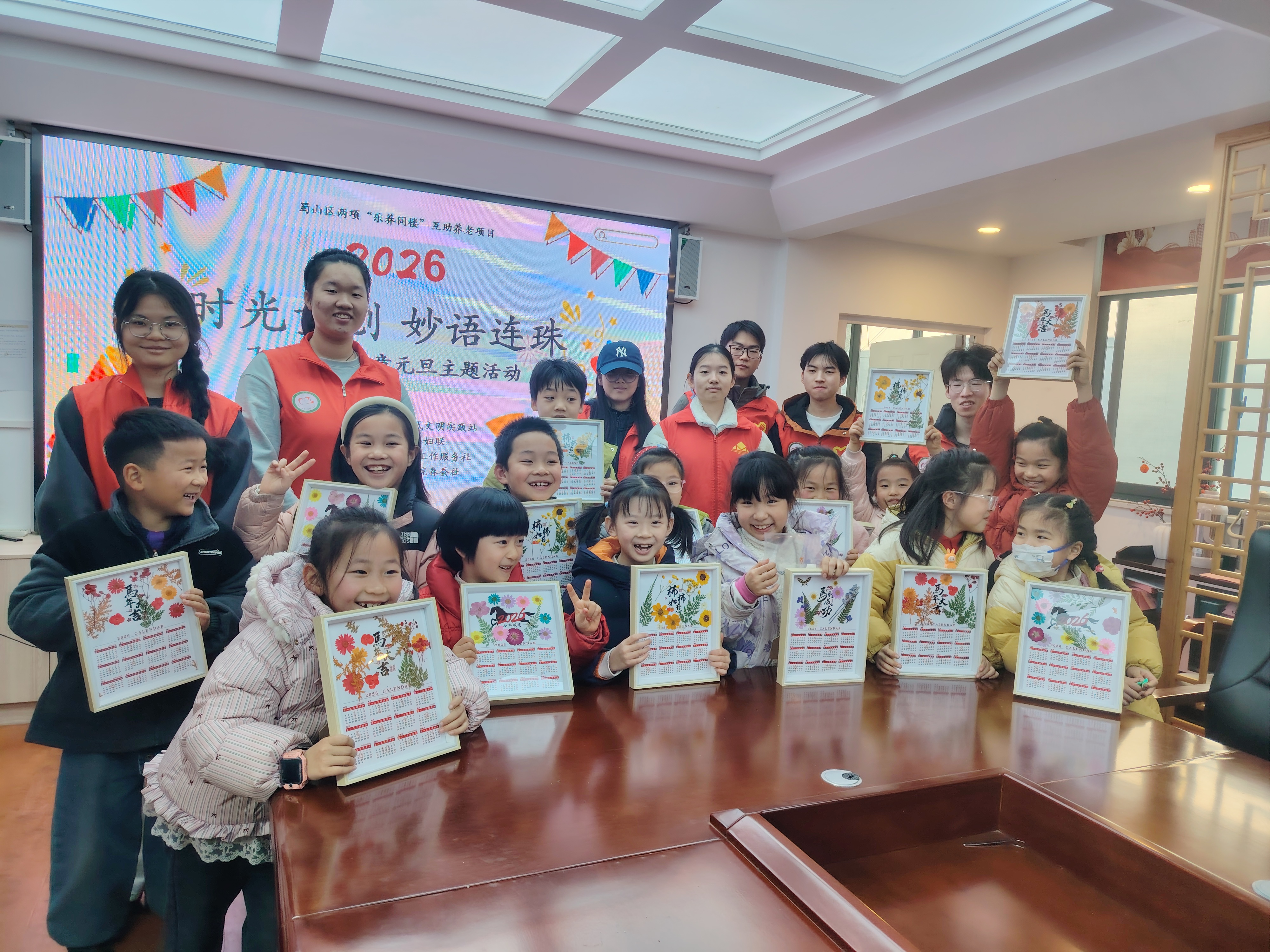 为迎接2026年元旦的到来,丰富社区儿童的文化生活,合肥市蜀山区琥珀街道飞虹社区社工站依托蜀山区两项“乐养同楼”互助养老项目成功举办以“童心巧手迎新年,慧语接龙贺元旦”为主题的亲子文化活动。活动巧妙融合了手工制作与传统文化学习,吸引了众多社区孩子们的积极参与,现场欢声笑语,洋溢着浓厚的节日气氛。