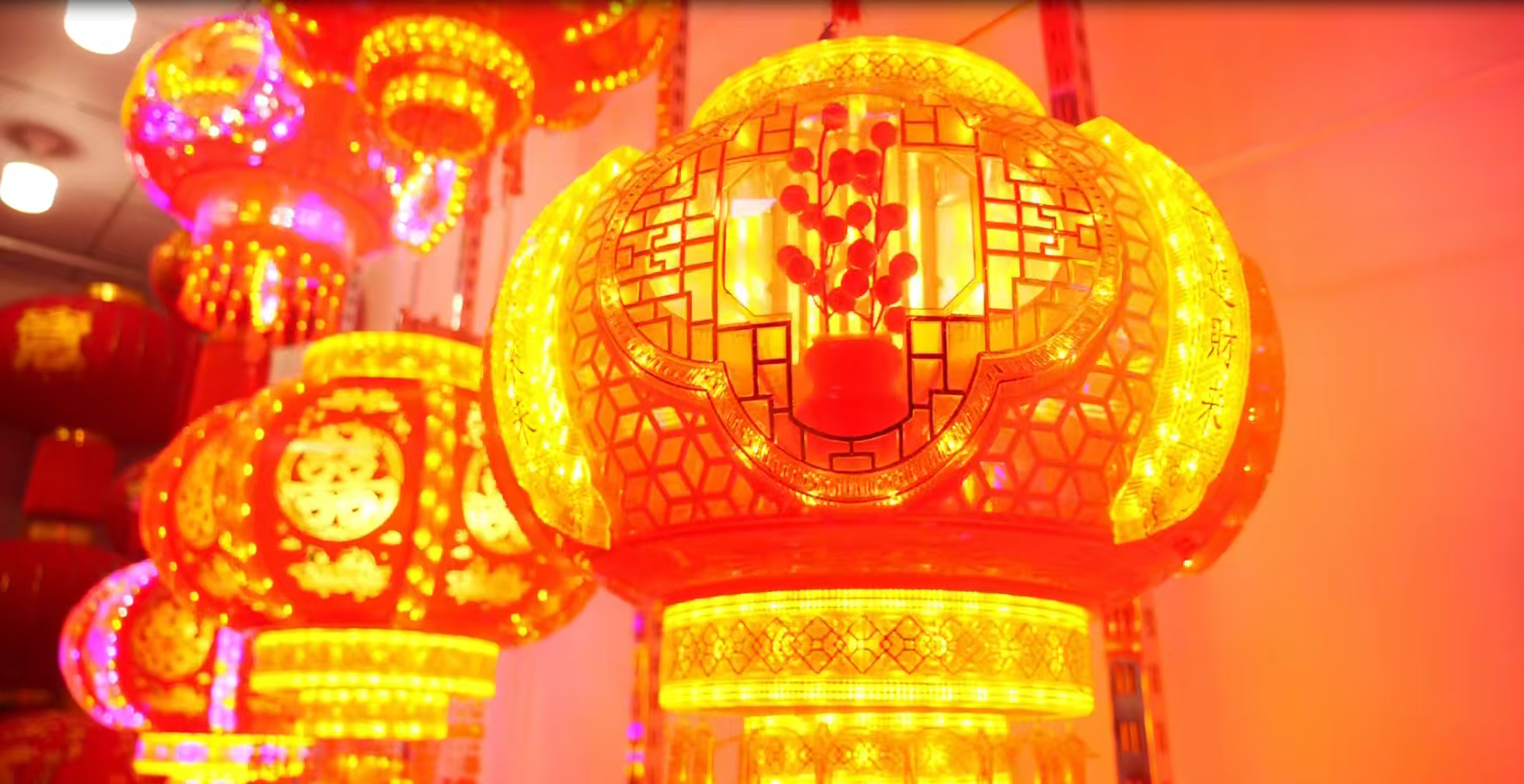 为给传统灯笼产业注入新活力,富丽灯饰有限公司积极探索创新,根据客户需求,对传统灯笼进行了全方位升级,不仅在材质上选用更环保、耐用的防水布料和竹制框架,还在设计上融入了生肖元素、非遗图案以及LED灯带等,让传统灯笼更具观赏性和实用性。在公司的成品展示区,挂着各式各样的成品灯笼,传统宫灯、植绒灯笼、拉丝灯笼等琳琅满目,新款创意灯笼更是格外吸睛。