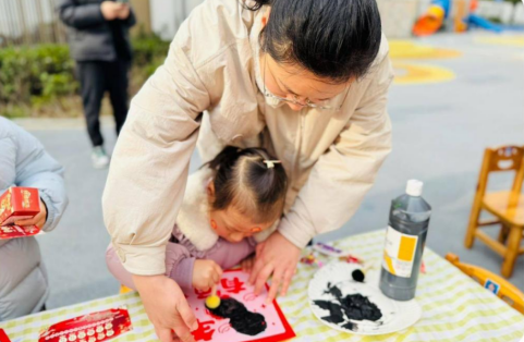 “年年有余”添画活动中,孩子们用画笔勾勒出灵动的小鱼,在一笔一画的创作中,悄然理解“年年有余”的吉祥寓意;“写福字”环节里,孩子们握紧毛笔,一笔一划认真书写,稚嫩的笔触下,是饱含着对新年最纯粹、最真挚的祝福。幼儿在动手实践中感受传统手工艺的独特魅力,更将对新年的美好期盼深深融入每一件作品之中。