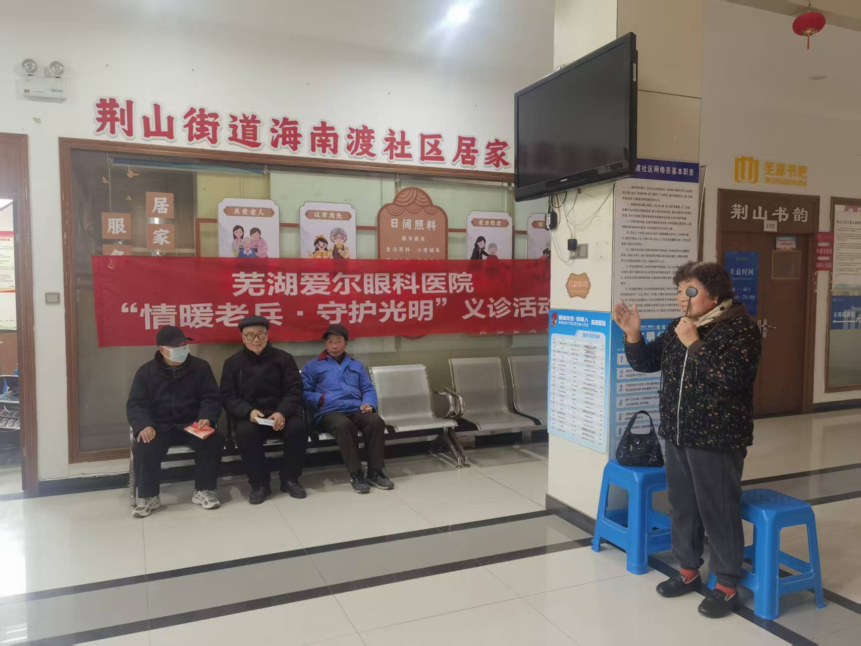 近日,芜湖市镜湖区荆山街道海南渡社区联合爱耳眼科医院组织开展“情暖老兵、守护光明”主题活动,帮助退役军人解决眼健康问题,此次活动共有近30名老年退役军人参加免费检查,受到大家的一致好评。