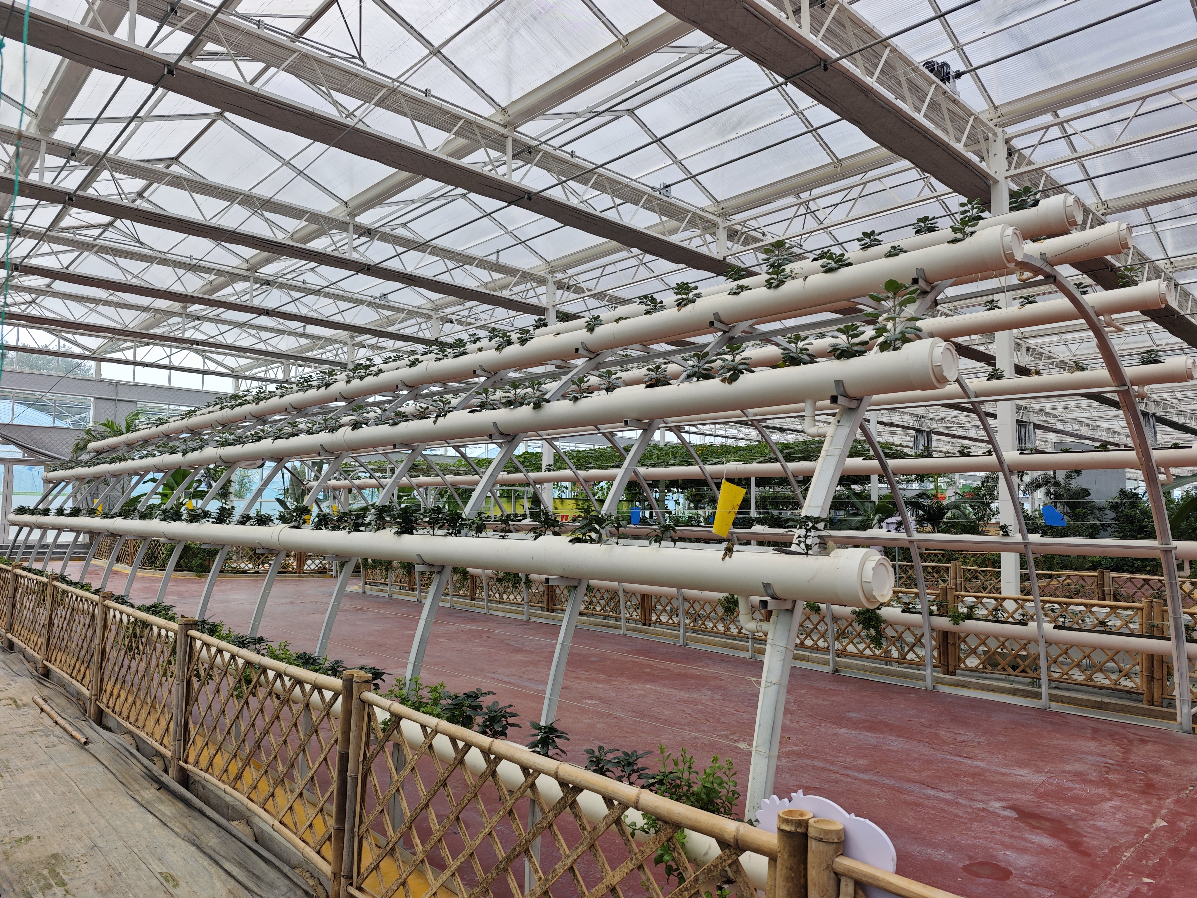 坐落于105国道旁,距岳西县城6公里、高速出口仅2公里的产业园交通便捷,园区内,69280平方米双层薄膜连栋温室大棚在阳光下熠熠生辉,核心区域6048平方米的智能玻璃温室内,物联网系统实现全覆盖,大数据光照湿度调控、自动化水肥一体化等前沿技术精准运行,螺旋管道栽培、岩棉栽培等十多种“高科技”种植模式,构成了独具特色的农业科技展示场景。