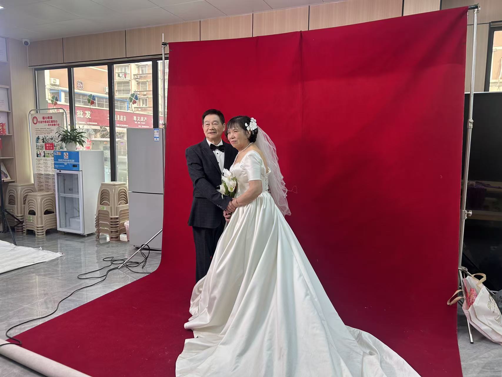 为弘扬尊老敬老的传统美德,圆老年夫妻的“婚纱梦”,近日,芜湖市汀棠街道综合文化站携手园丁社区共同举办“银龄偕老·镜藏芳华”老年夫妻公益拍摄活动,为辖区内数十对携手走过数十载的老年夫妻定格温情瞬间。