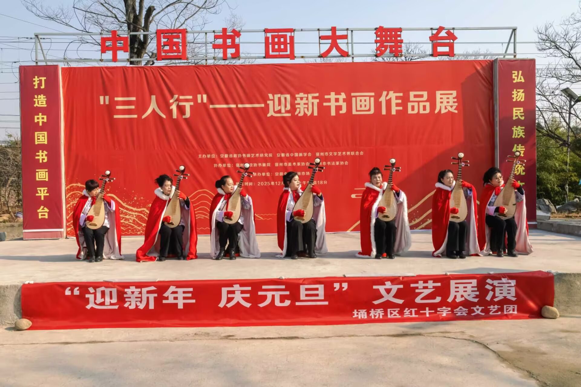 近日,宿州市书画大市场联袂埇桥区红十字艺术团,举办“三人行迎新年书画展暨载歌载舞颂党恩”文艺汇演。节目形式多样,内容丰富多彩,涵盖歌曲、舞蹈、琵琶、走秀、形体舞等,锣鼓喧天庆盛世,翩翩起舞颂党恩,让观众深受感动,纷纷为之高兴喝彩。