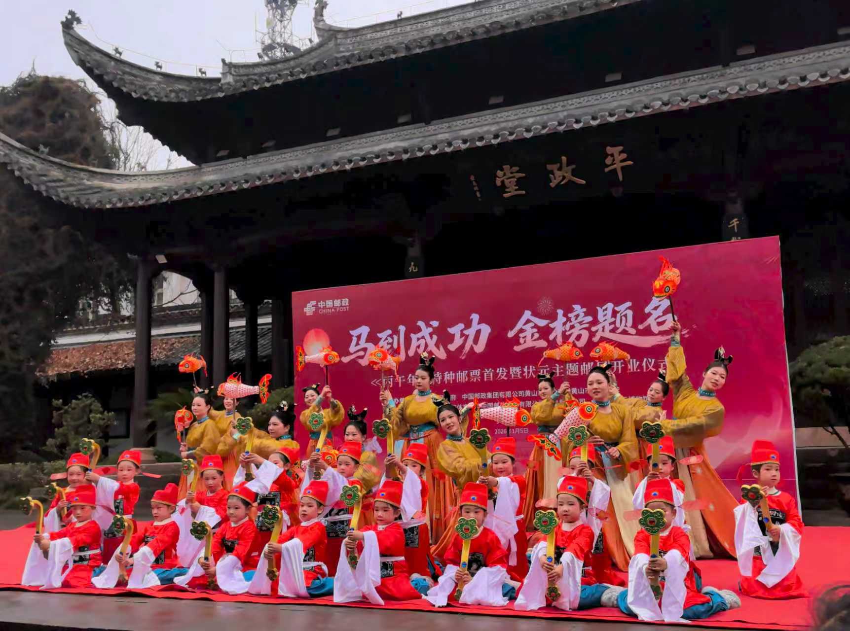 当状元文化与邮政服务相遇,会碰撞出怎样的火花?1月5日,《丙午年》特种邮票首发暨状元主题邮局开业仪式在休宁县状元博物馆举行。本次活动以生肖邮票首发为契机,深度融合地方状元文化,不仅为集邮爱好者带来新品,更打造了一处可寄、可赏、可体验的文化驿站。