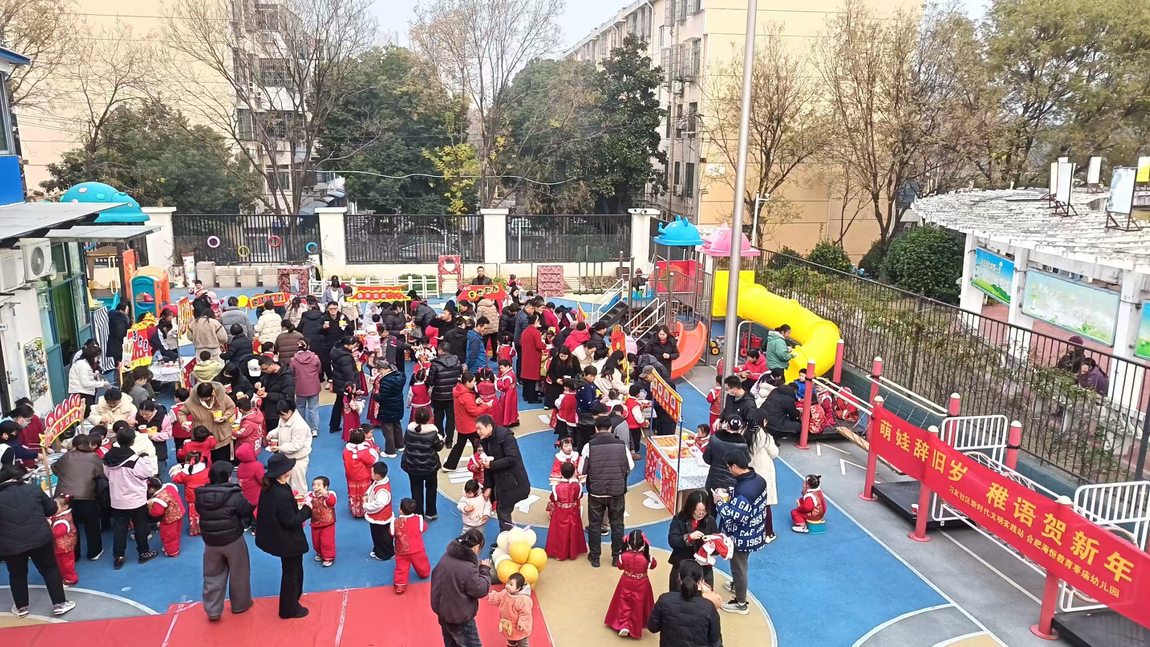 近日,合肥经开区海恒中心习友社区辖区海恒教育枣庙幼儿园举办的“萌娃辞旧岁 稚语贺新年”主题迎新春活动热闹上演。孩子们通过童趣盎然的表演和充满传统年味的庙会体验,在欢声笑语中迎接新春的到来。