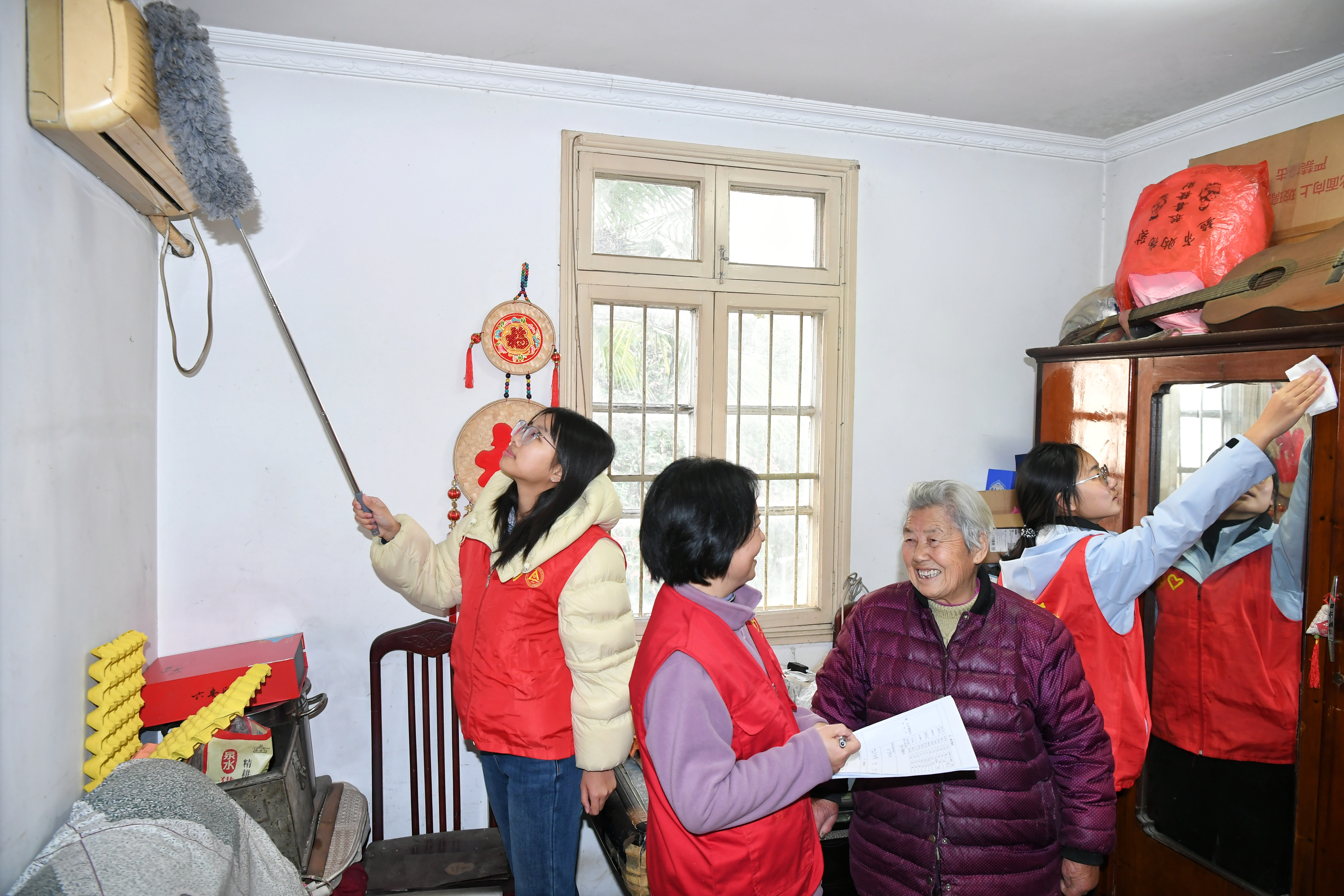 活动现场,志愿者们分组有序入户,针对老人行动不便、清洁能力薄弱的痛点,开展“一对一”定制化帮扶。有的化身“阳光搬运工”,小心翼翼地将老人家中厚重的棉被、衣物搬至户外向阳处晾晒,双手反复轻柔拍打除尘,让积压一冬的被褥在暖阳下重焕蓬松柔软,浸润阳光的清香;有的手持清洁工具,重点对厨房油污、卫生间死角、门窗缝隙等卫生难点进行彻底清理,擦拭桌椅、拖地除尘,不放过任何一处细节,还贴心为老人更换了崭新的床单被罩,让原本略显陈旧的居室瞬间焕然一新、亮堂整洁。