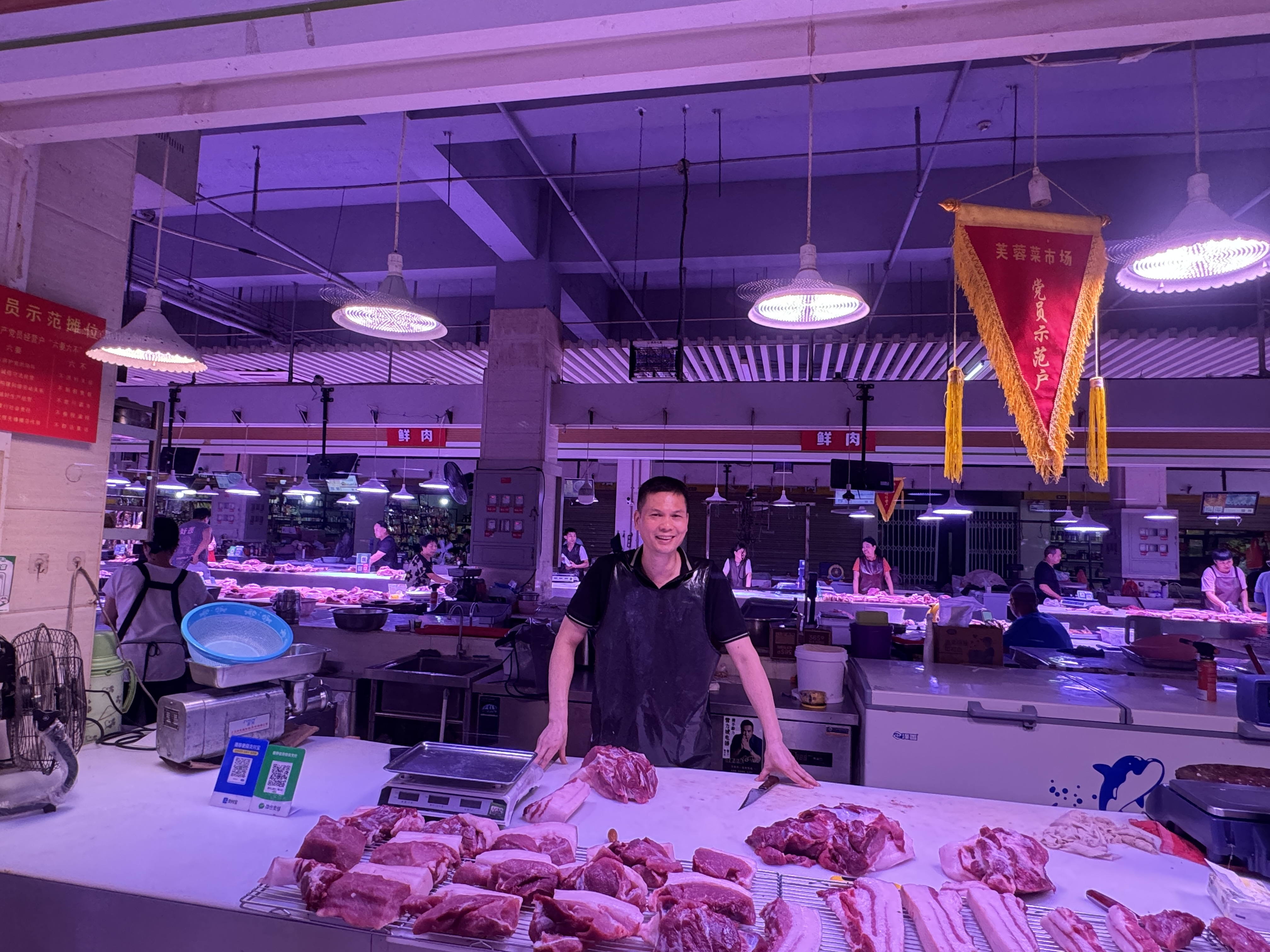 芙蓉菜市场商圈党支部成立以来,不仅持续巩固流摊整治成效,更用一场场有温度的活动凝聚人心、激活商圈活力。每月开展“卫生标兵”评选,以榜样力量引导商户主动践行文明经营理念;组织大家包粽子、玩棋牌,“商圈一家亲”的和谐氛围愈发浓厚。同时支部牵头组建志愿者服务队,开展食品安全科普、普法宣传、“你点我检”等便民活动,精准守护群众“舌尖安全”。