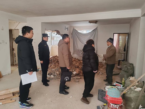 近日,芜湖市镜湖区大砻坊街道古城社区接到物业公司紧急反馈,新华新村有业主在住宅装修期间疑似拆除承重墙,给楼体安全带来潜在威胁。接到消息后,社区工作人员迅速上门核查情况,第一时间将现场照片上报大砻坊街道城管科,并当场向业主提出暂停施工的要求。