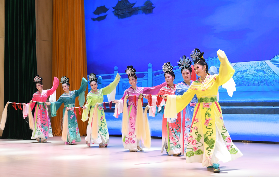 作为地方戏曲的代表,庐剧《秦雪梅》选段“观画”的登场,带来了浓郁的本土风情。演员以细腻传神地演唱,刻画了大家闺秀赏画时含蓄复杂的心绪。