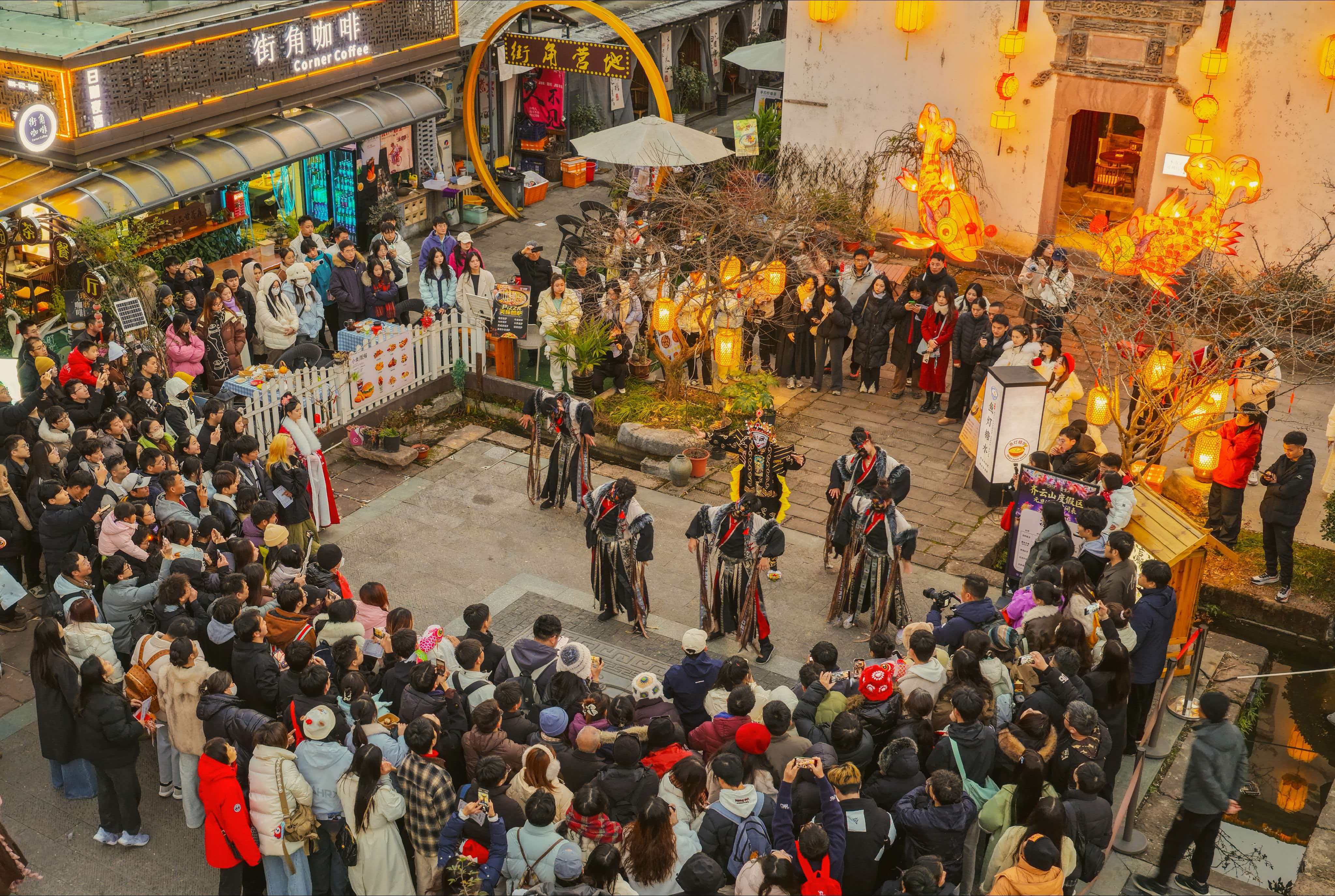 夜幕降临,善水街成为星火笼罩下的欢乐海洋。徽州鱼灯、湖南炭花舞、河南皮影戏,还有打铁花、药发木偶等10多项省级、国家级非遗夜演,在游客的簇拥下照亮整条街区。2024年以来,非遗项目的场景化打造和持续焕新,让传统文化“活”起来,也让善水街“火”起来。