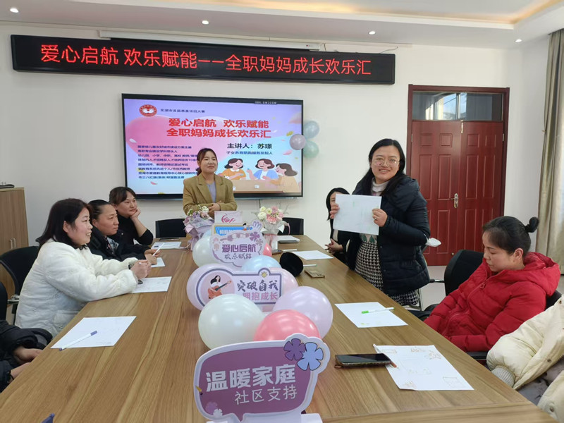 为关爱社区全职妈妈群体,丰富精神文化生活,提升自我价值感与社会参与感,1月14日,芜湖市镜湖区弋矶山街道及所属荷塘社区党委、新时代文明实践站、妇联、社会组织联合会、计生协、统战部、物业办等部门,成功举办“爱心启航 欢乐赋能——全职妈妈成长欢乐汇”主题讲座活动,吸引了辖区内20余位全职妈妈热情参与。