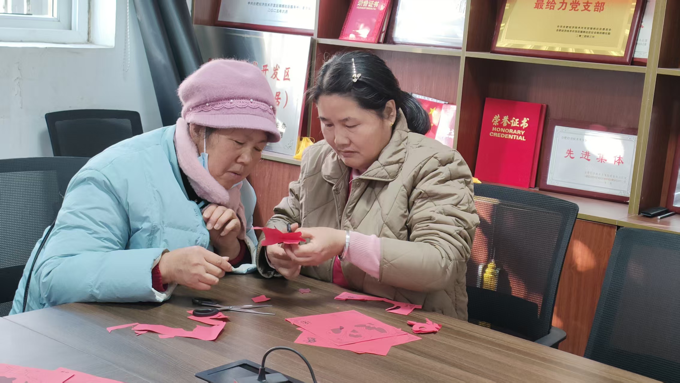 合肥经开区天门湖社区开展“指尖生花·福韵满堂”窗花创作活动