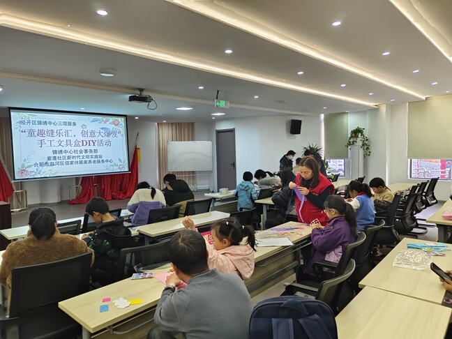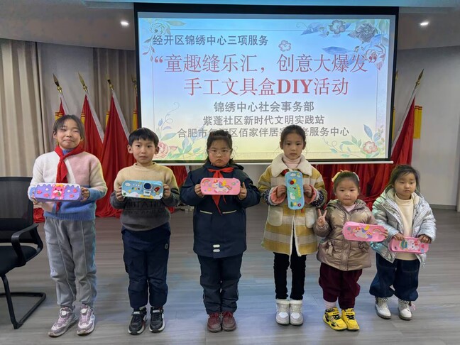 为丰富少年儿童课余生活,提升动手实践能力,近日,合肥经开区锦绣中心社会事务部、紫蓬社区新时代文明实践站、妇联、团支部联合合肥市包河区佰家伴居家养老服务中心,共同举办 “童趣缝乐汇,创意大爆发” 手工文具盒 DIY 活动,邀请辖区退役军人家属及其子 女,共计 20 余组亲子家庭参与。