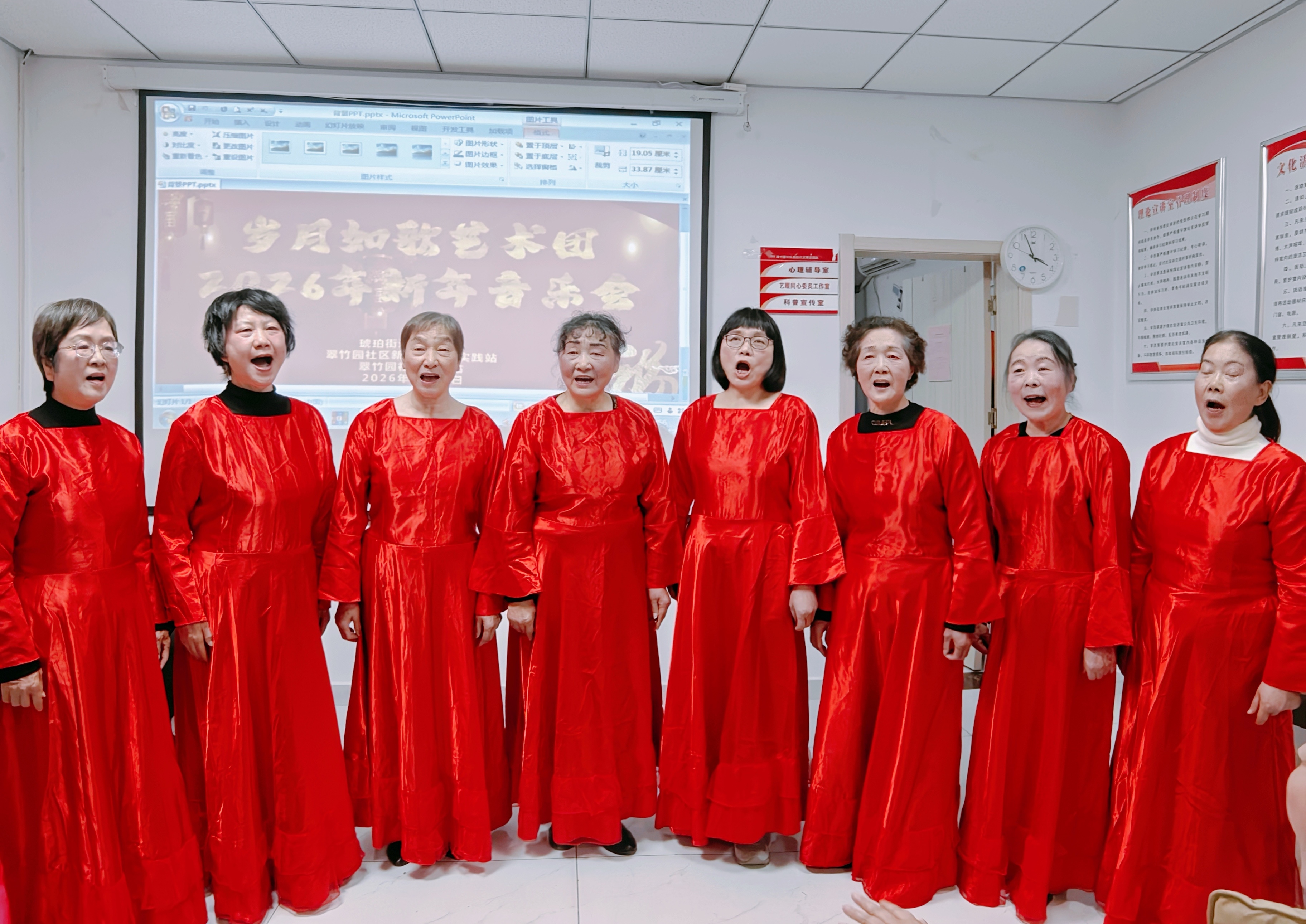 为丰富社区居民的精神文化生活,营造温馨祥和的新年氛围,2026年1月17日,在合肥市蜀山区翠竹园社区的支持下,岁月如歌艺术团在社区活动中心举办了2026新年音乐会。社区居民、文艺爱好者欢聚一堂,在歌声与欢笑中迎接崭新的一年。