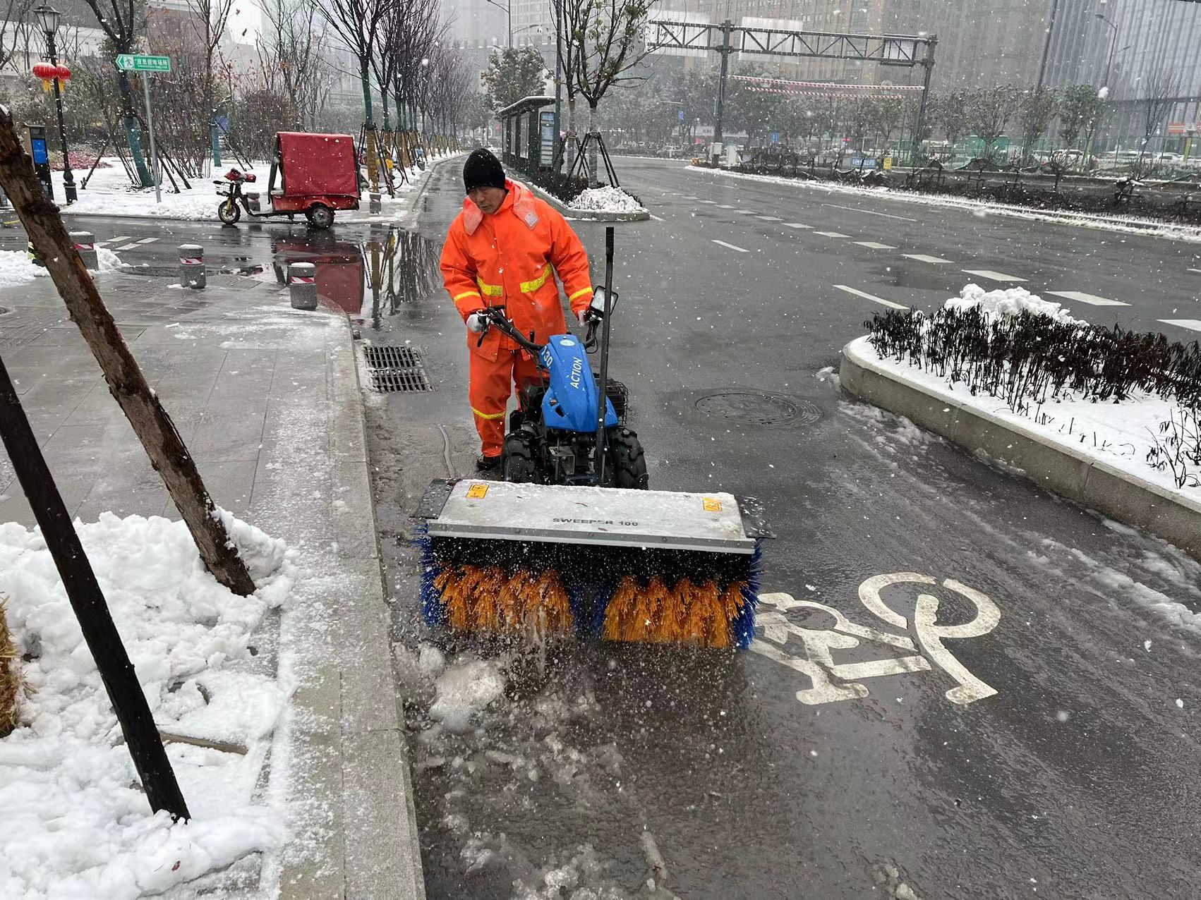 该局负责人介绍,将人工雪推加装动力装置和网刷后,就升级成了小型雪铲车,特别适合在非机动车道、公园广场道路、居民小区作业。其操作简单,效率高,一台扫雪车相当于20个人工,而且不损伤路面和交通标线。