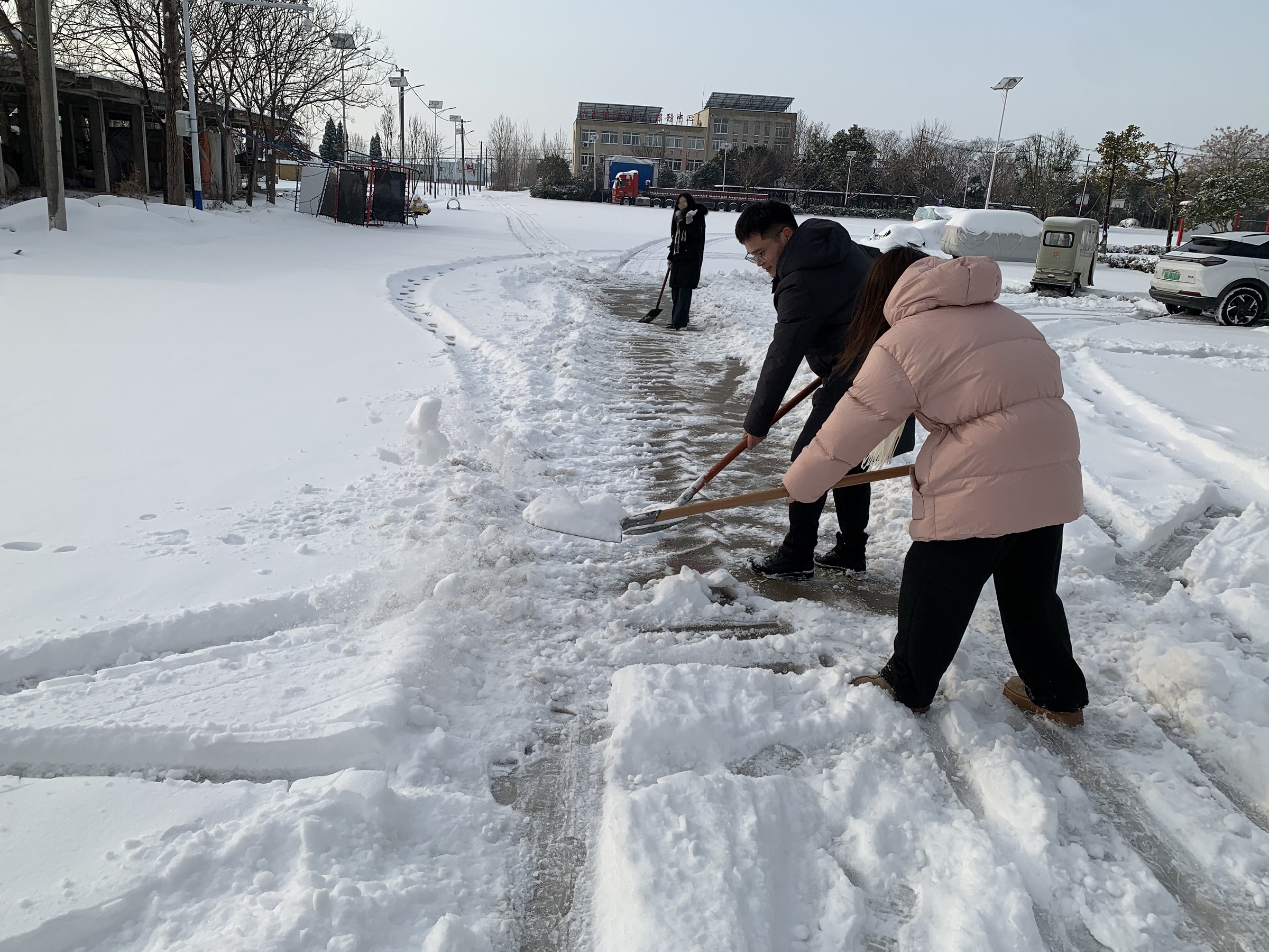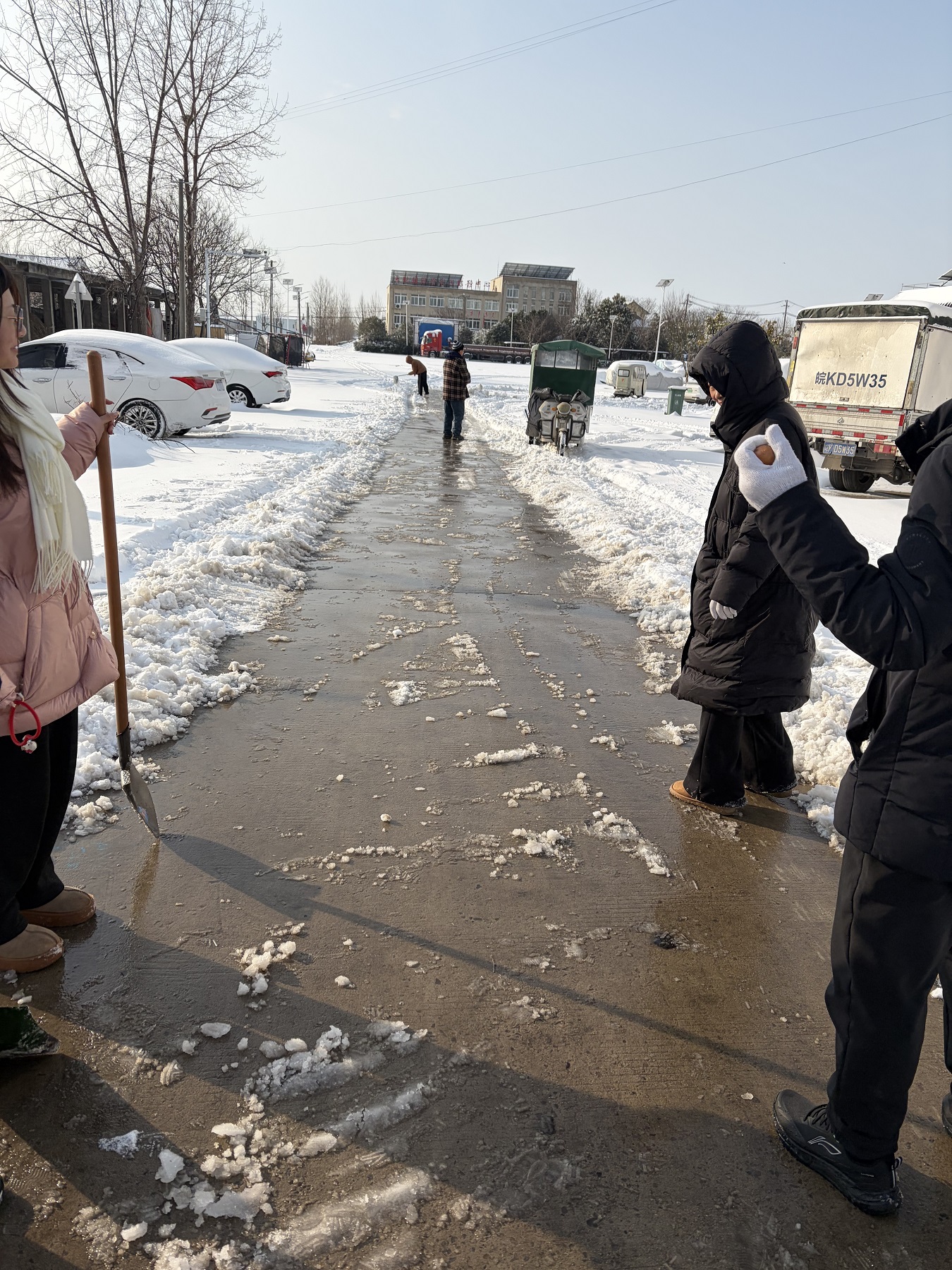 近日,太和县遭遇持续雨雪冰冻天气,道路积雪结冰严重,给群众出行带来极大不便。大新镇政务服务中心门前及通往中心的主要通道被厚厚的积雪覆盖,成为群众办事的“拦路虎”。为确保群众办事不受天气影响,大新镇政务服务中心全体工作人员,利用工作间隙拿起铁锹、扫帚,全力清扫积雪积冰。