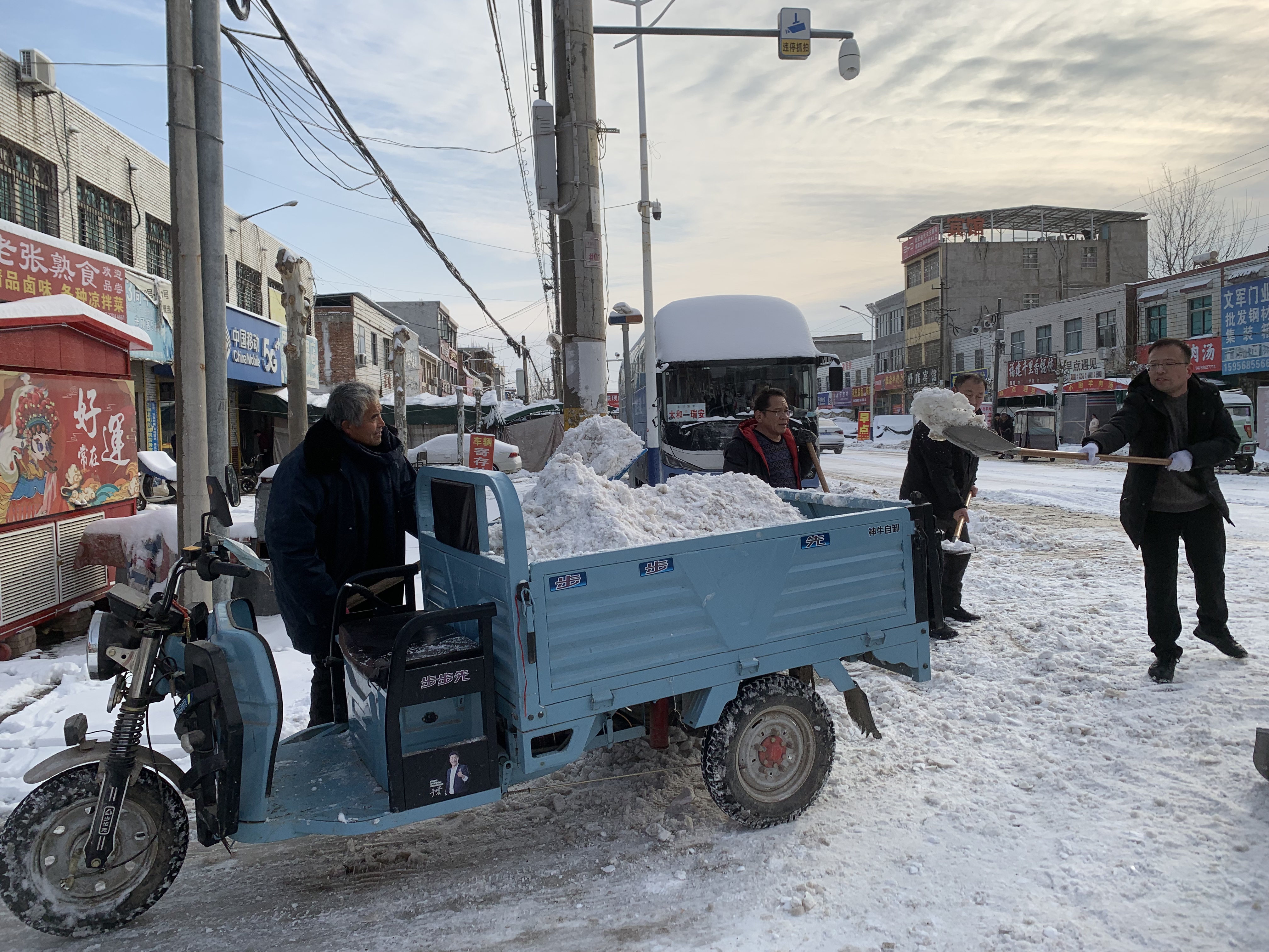 在镇团委的统一协调与安全指导下,志愿者们手持铁锹、扫帚等工具,分组作业、分段负责,重点对010县道、十字路口、市场附近等人流集中路段开展集中清雪。志愿者们三五人一组,相互配合、干劲十足。铁锹破冰、扫帚清雪……一抹抹“志愿红”在银装素裹的街道上格外醒目,成为寒冬里最温暖的风景。不少沿街商户和过往群众受到感染,也主动加入清雪行列。