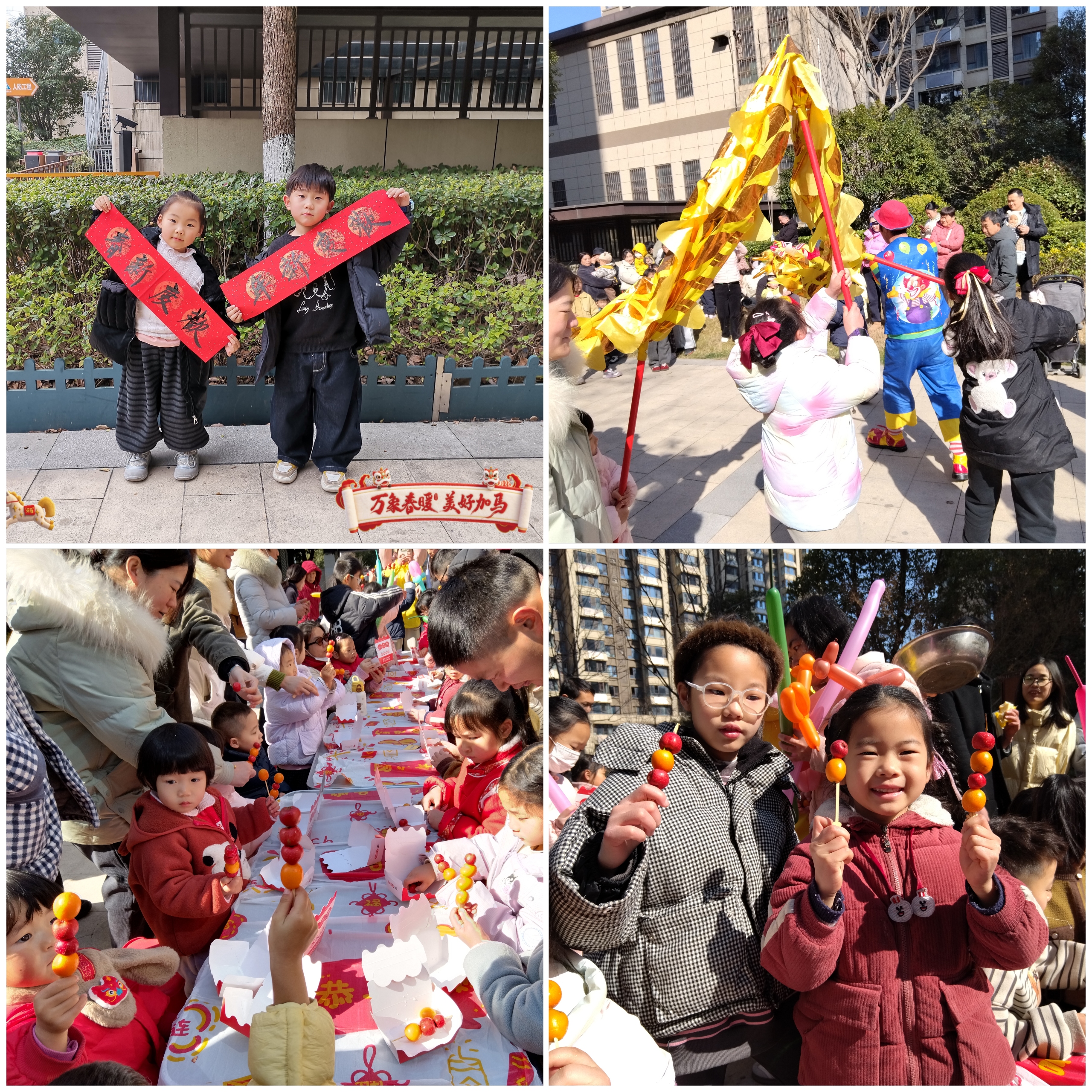 活动现场精彩纷呈,六大环节无缝衔接、热闹有序:亲子DIY冰糖葫芦区里,家长与孩子携手制作酸甜美味,共享手作乐趣;新年舞狮表演灵动欢腾,雄狮与小观众亲密互动,点燃全场热情;爆米花香气四溢、编气球摊位创意无限,孩子们捧着免费零食和可爱气球玩偶,笑容灿烂;墨香氤氲的春联区,书法爱好者挥毫送福,居民们有序领取满载祝福的春联与“福”字;亲子互动游戏环节更是欢声笑语不断,家长与孩子默契协作,邻里间也在互帮互促中渐渐熟络,原本分散的楼栋居民,在这场社区活动中凝聚成温暖的“大家庭”。(施纪)