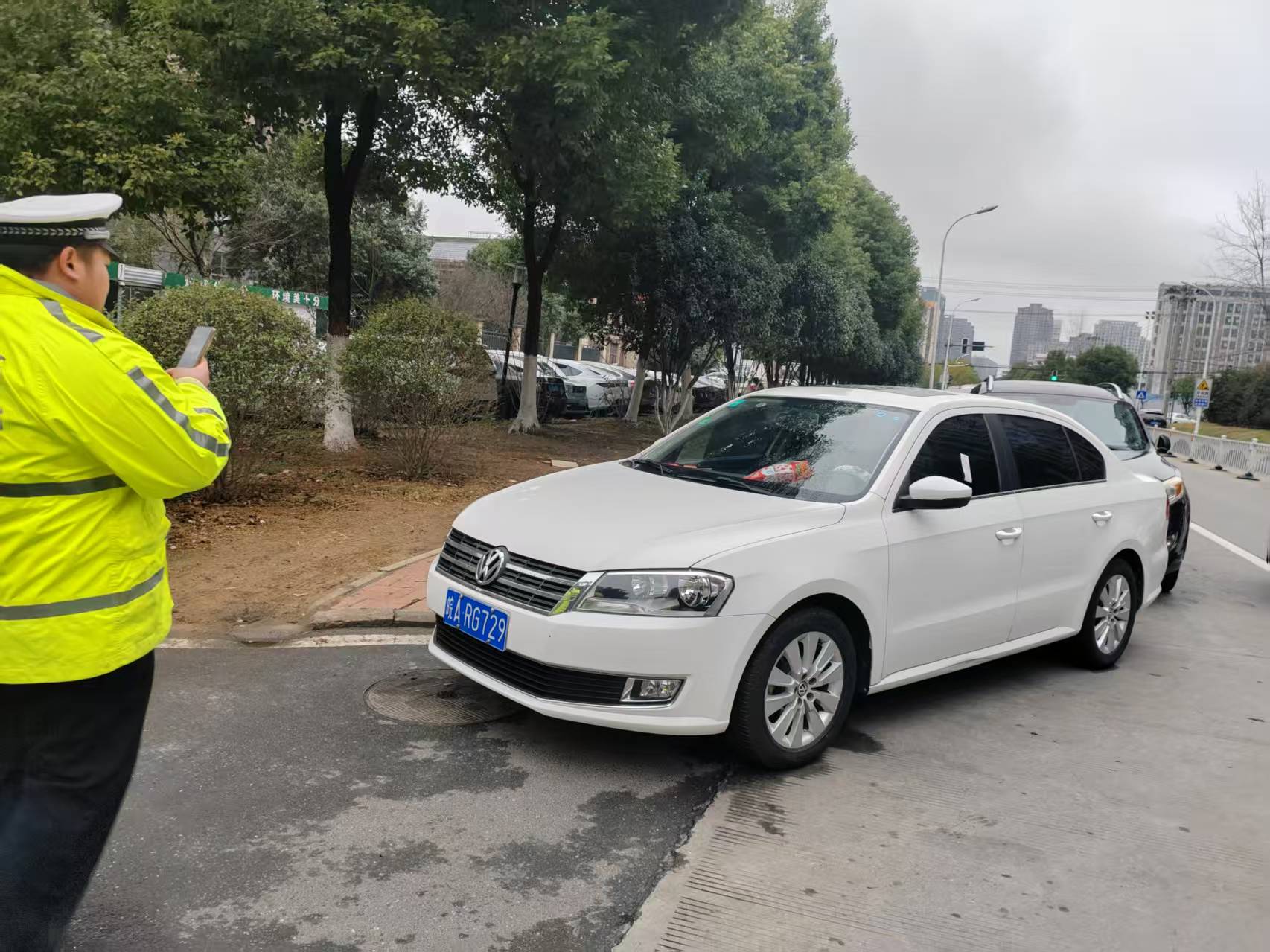 蜀山里菜市场作为周边居民采购生活物资的重要场所,人流、车流量较大,部分驾驶员图一时便利,将车辆随意停放在雪霁路两侧及菜市场出入口,不仅占用行车道、人行道,影响车辆和行人正常通行,还存在较大安全隐患,群众反映强烈。整治行动中,执法人员秉持“教育与处罚相结合”的原则,采取“劝离为主、贴单为辅”的方式,对现场违停车主进行耐心劝导,讲解违停行为的危害及相关交通法规,引导车主自觉将车辆停放至指定泊位;对驾驶员不在现场、无法现场劝离的违停车辆,依法拍照取证并张贴违停告知单,严厉震慑违停违法行为。
